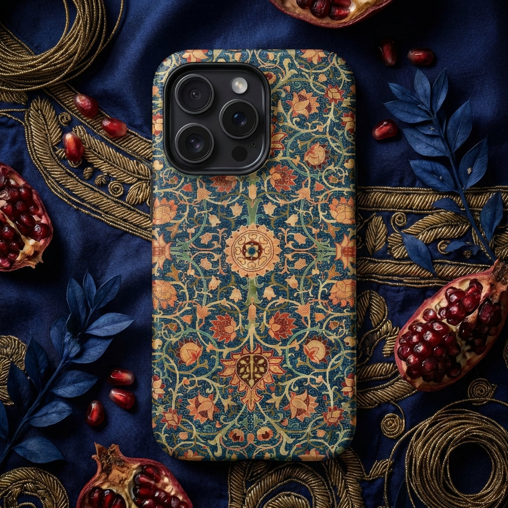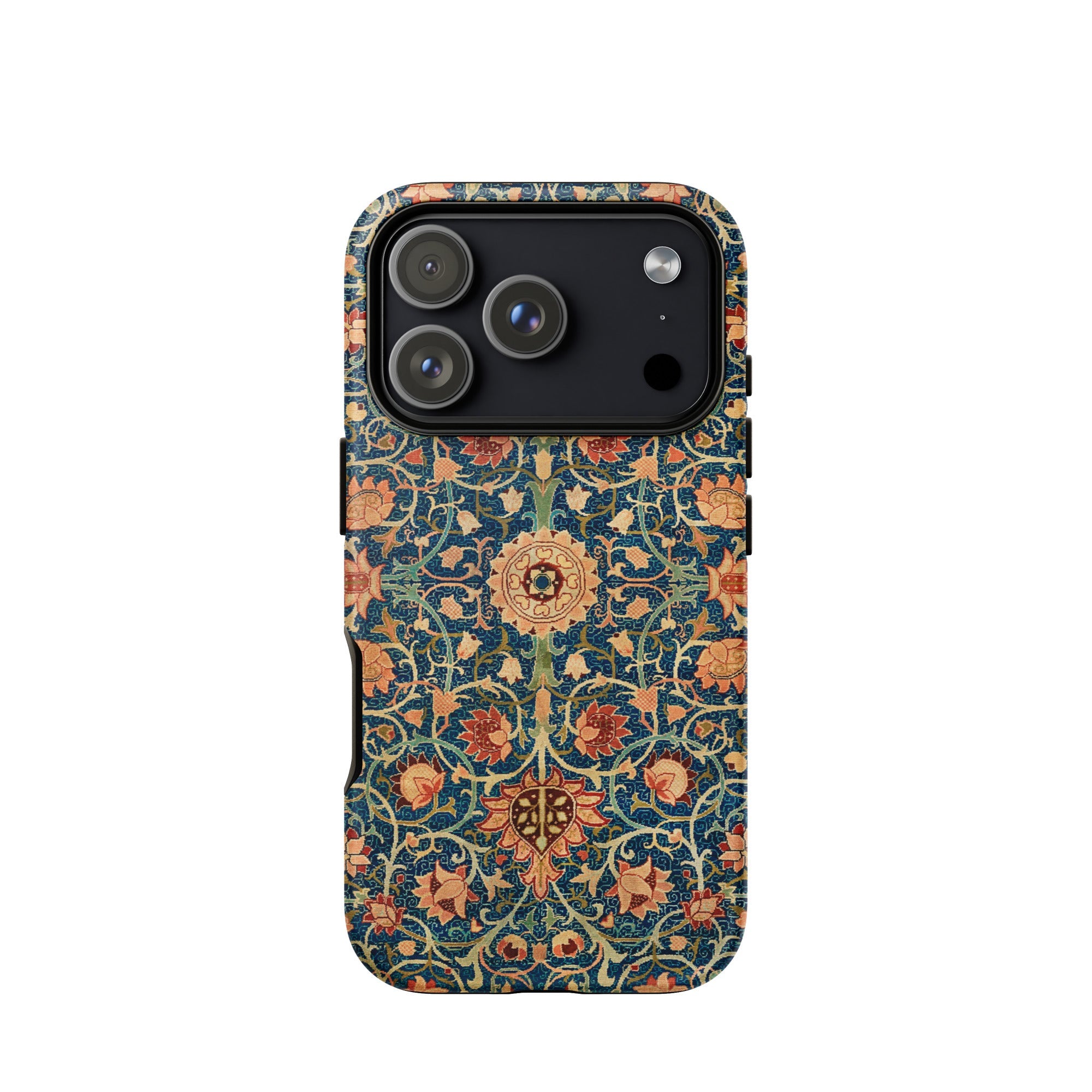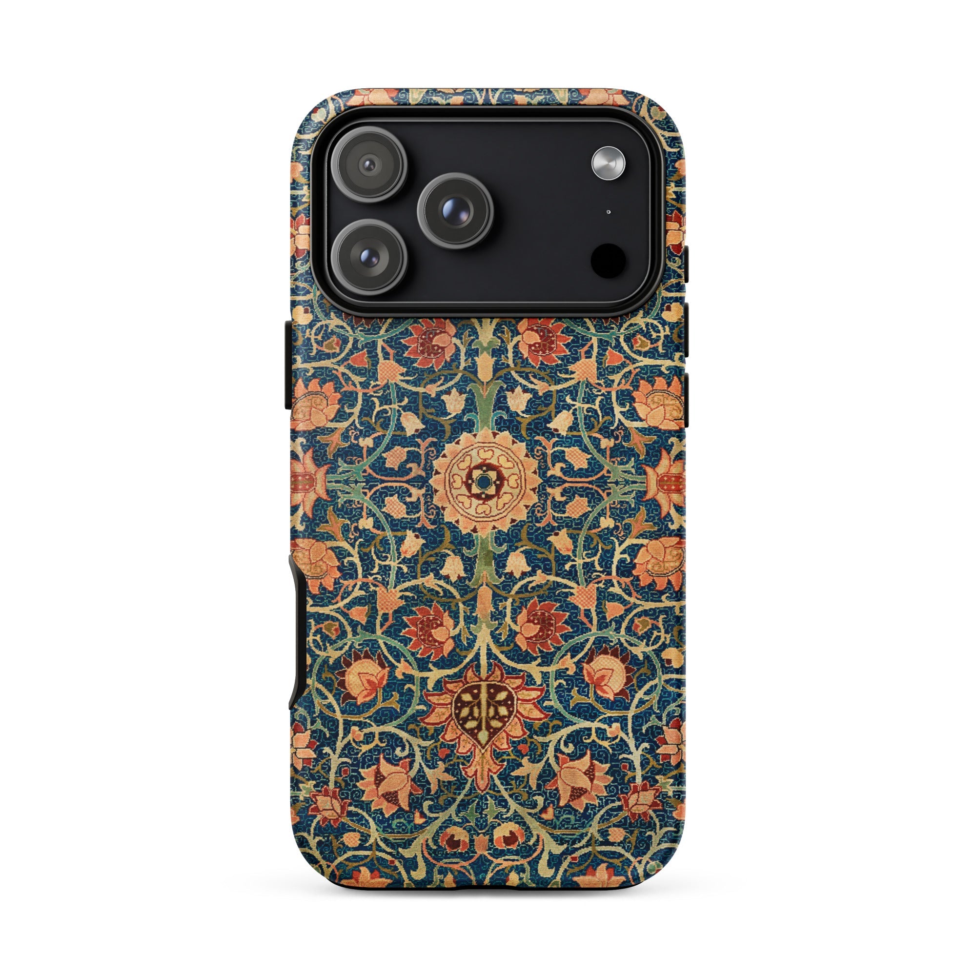 Envelopper votre iPhone Dans la splendeur horticole de William Morris avec ce cas inspiré des arts et de l'artisanat. La conception du tapis Holland Park transforme votre appareil en un trésor victorien de poche, présentant des prouesses inégalées de motifs de Morris.