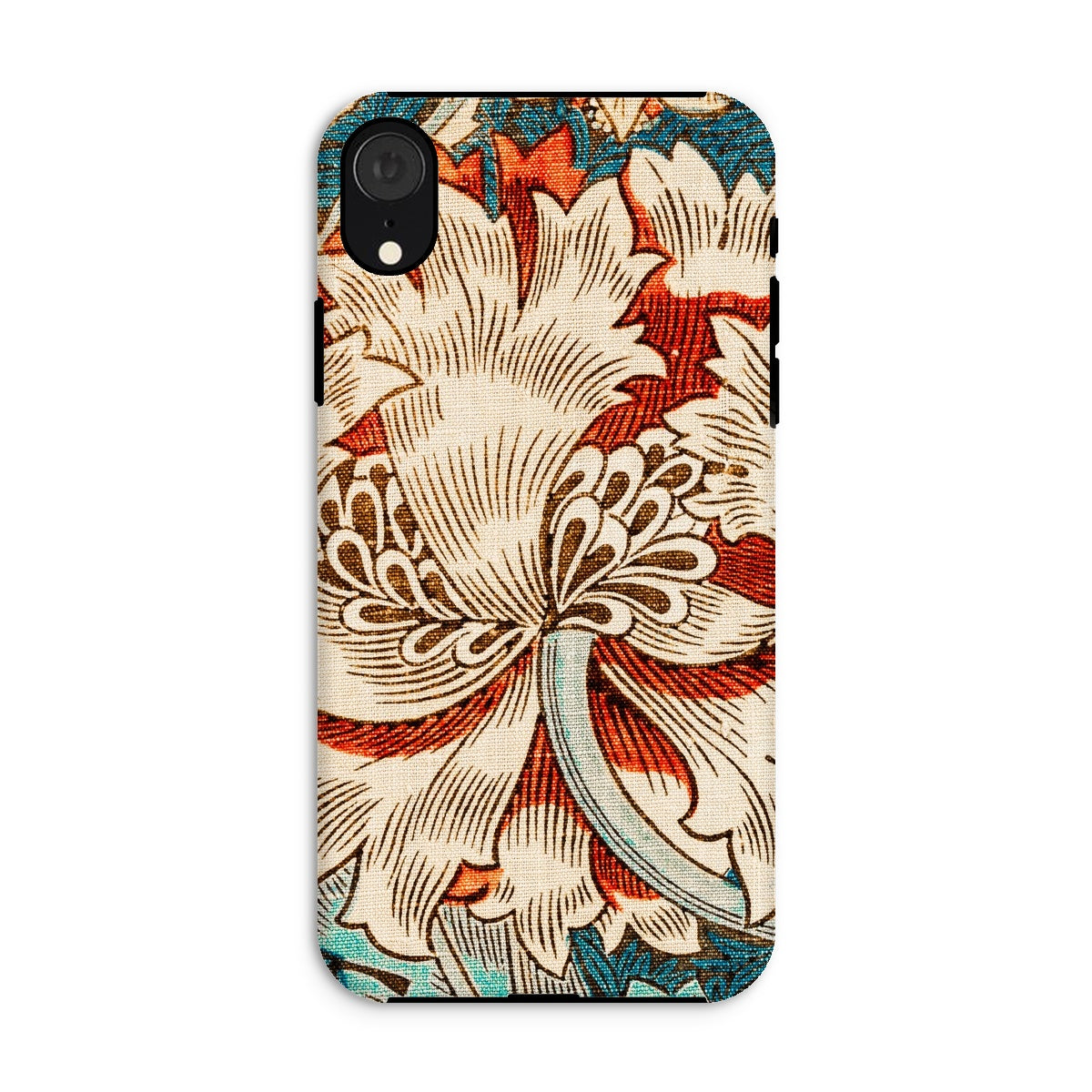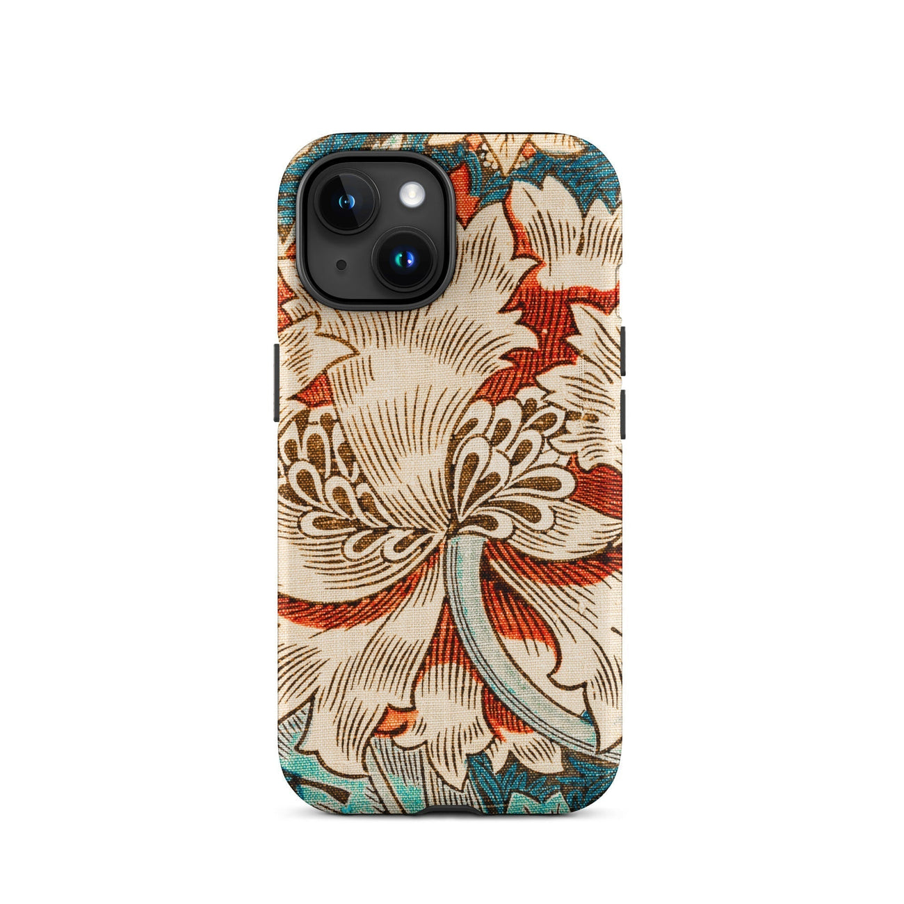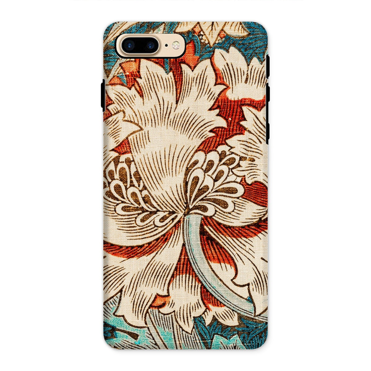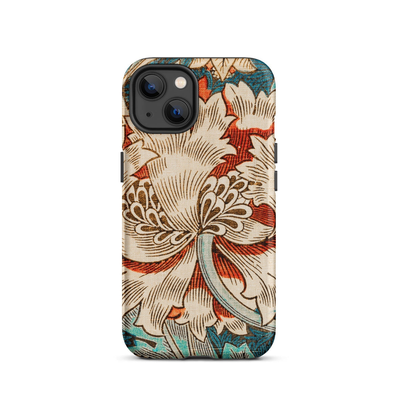 Immergez-vous dans la rêverie botanique de William Morris avec ce chèvrefeuille iPhone cas. La vision des arts et artisanat du Maestro fleurit devant vos yeux - une fleur crémeuse de chrysanthemum dépasse ses pétales contre une toile turquoise. La ligne complexe respire la vie dans chaque vrille et feuille, tandis que les vignes sinueuses dansent autour de la floraison centrale.