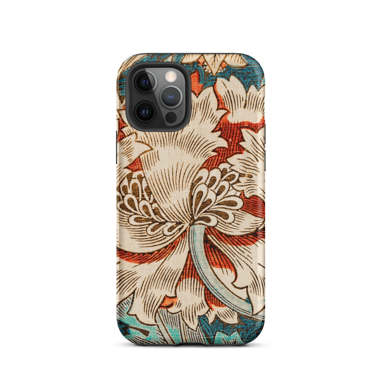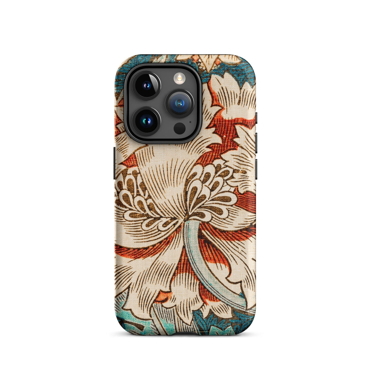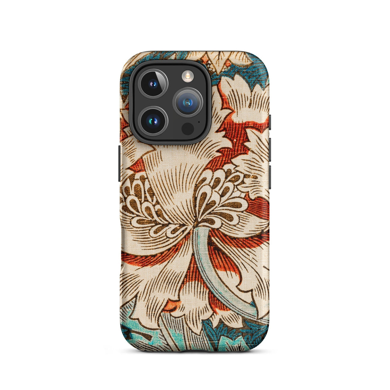 Immergez-vous dans la rêverie botanique de William Morris avec ce chèvrefeuille iPhone cas. La vision des arts et artisanat du Maestro fleurit devant vos yeux - une fleur crémeuse de chrysanthemum dépasse ses pétales contre une toile turquoise. La ligne complexe respire la vie dans chaque vrille et feuille, tandis que les vignes sinueuses dansent autour de la floraison centrale.