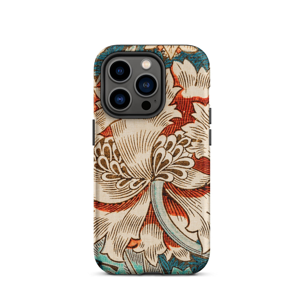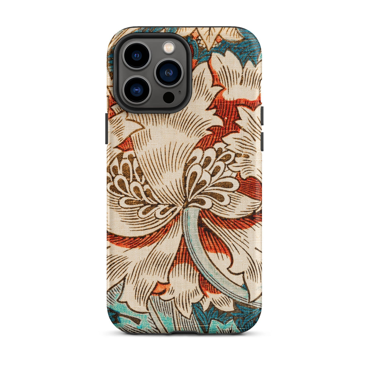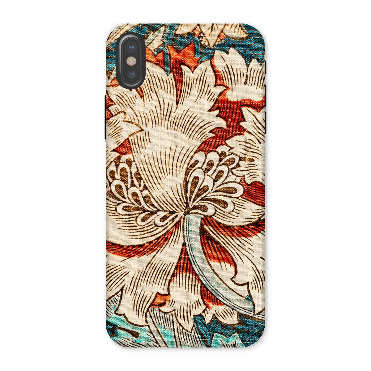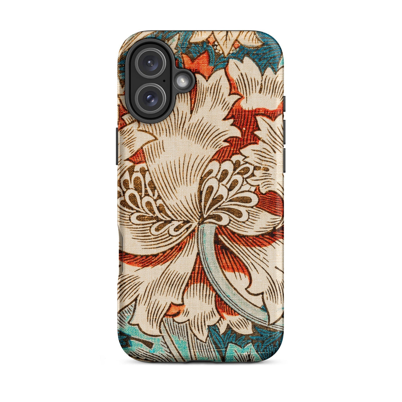 Immergez-vous dans la rêverie botanique de William Morris avec ce chèvrefeuille iPhone cas. La vision des arts et artisanat du Maestro fleurit devant vos yeux - une fleur crémeuse de chrysanthemum dépasse ses pétales contre une toile turquoise. La ligne complexe respire la vie dans chaque vrille et feuille, tandis que les vignes sinueuses dansent autour de la floraison centrale.