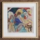 Vous trouverez les canons au milieu d'une symphonie de tons azur, cramoisi et doré, emblématiques du saut pionnier de l'artiste vers l'abstraction. En contemplant cette impression, vous êtes transporté en 1913, lorsque Kandinsky a brisé les conventions artistiques, reflétant le bouleversement de l'Europe. La composition dynamique de l'impression—un maelström de coups de pinceau émotionnels et de formes fragmentées—offre une inspiration quotidienne, transformant votre espace en un portail vers la naissance du modernisme.