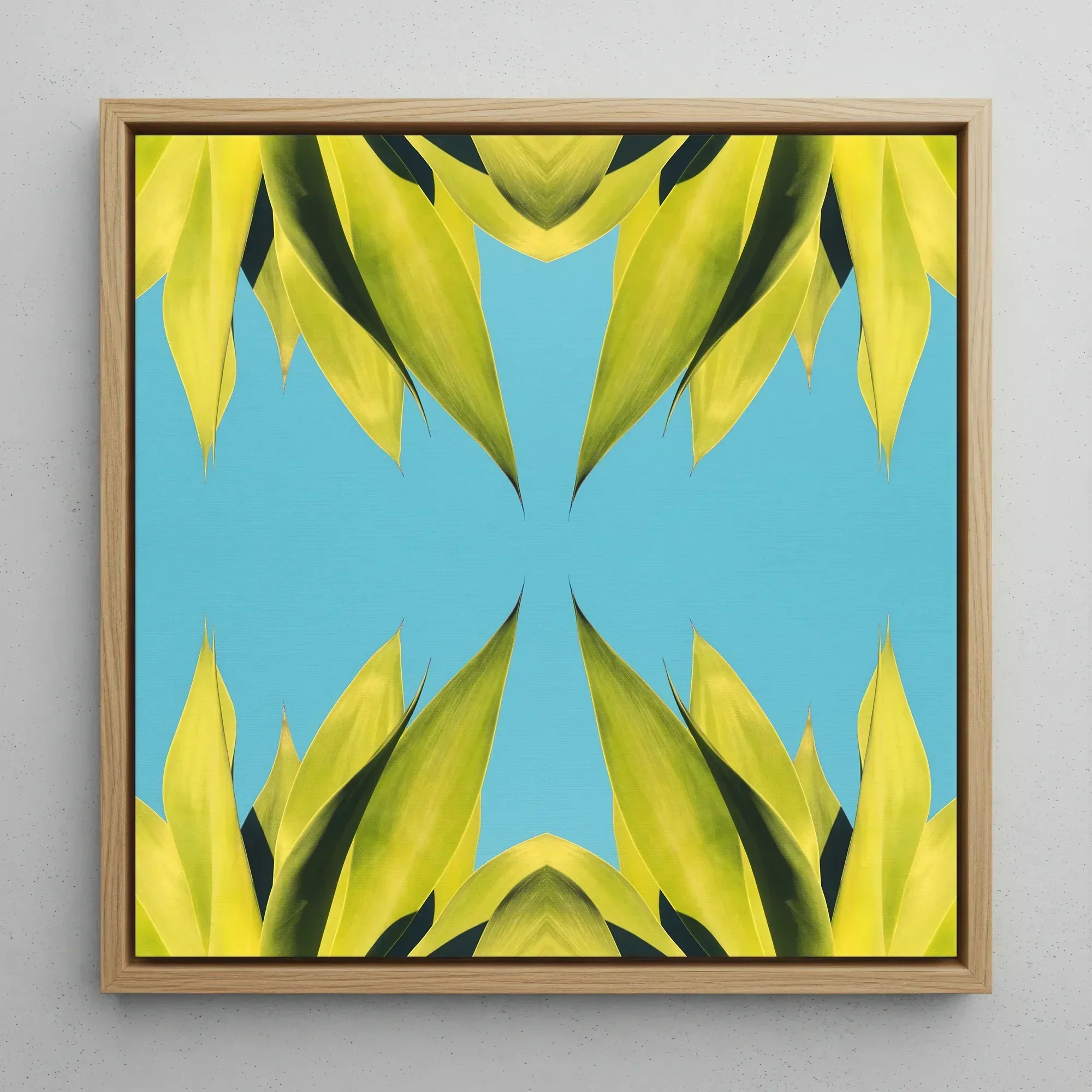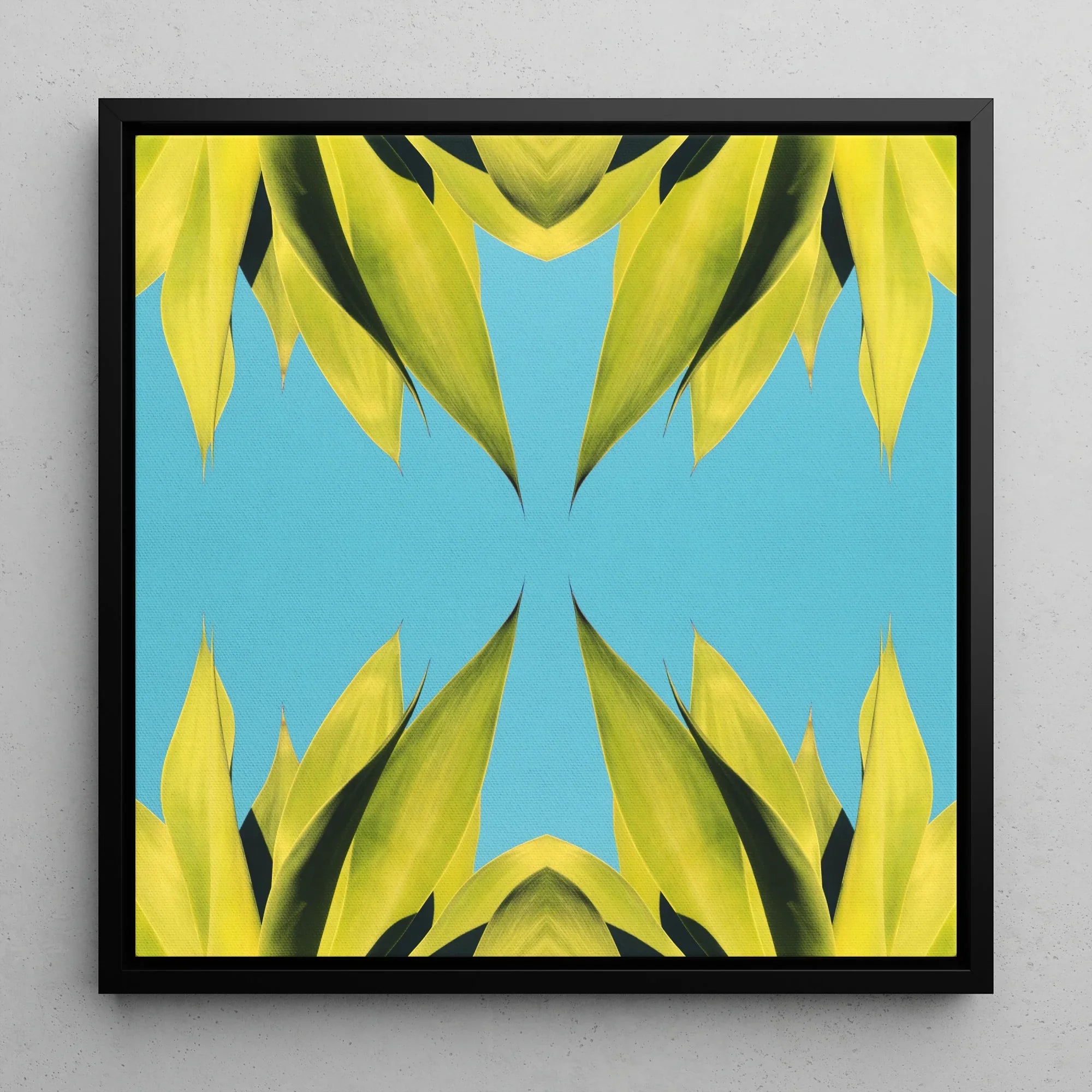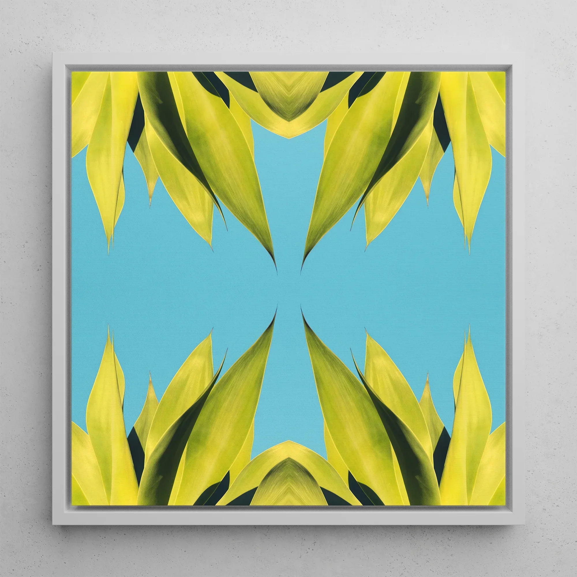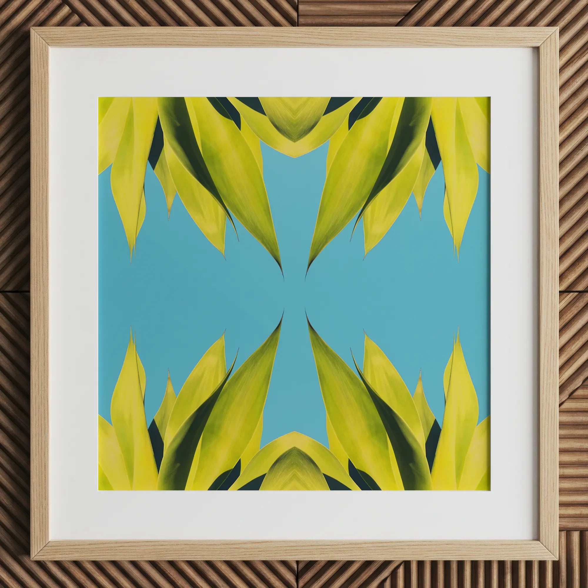 Dévoiler un royaume où la botanique rencontre l'illusion d'optique avec cette photographie succulente avant-garde imprimé art. Les frondes de chartreuse, capturées en haute définition, se déploient en parfaite symétrie contre une étendue céruléenne, fabriquant un paradoxe visuel qui remet en question la perception.