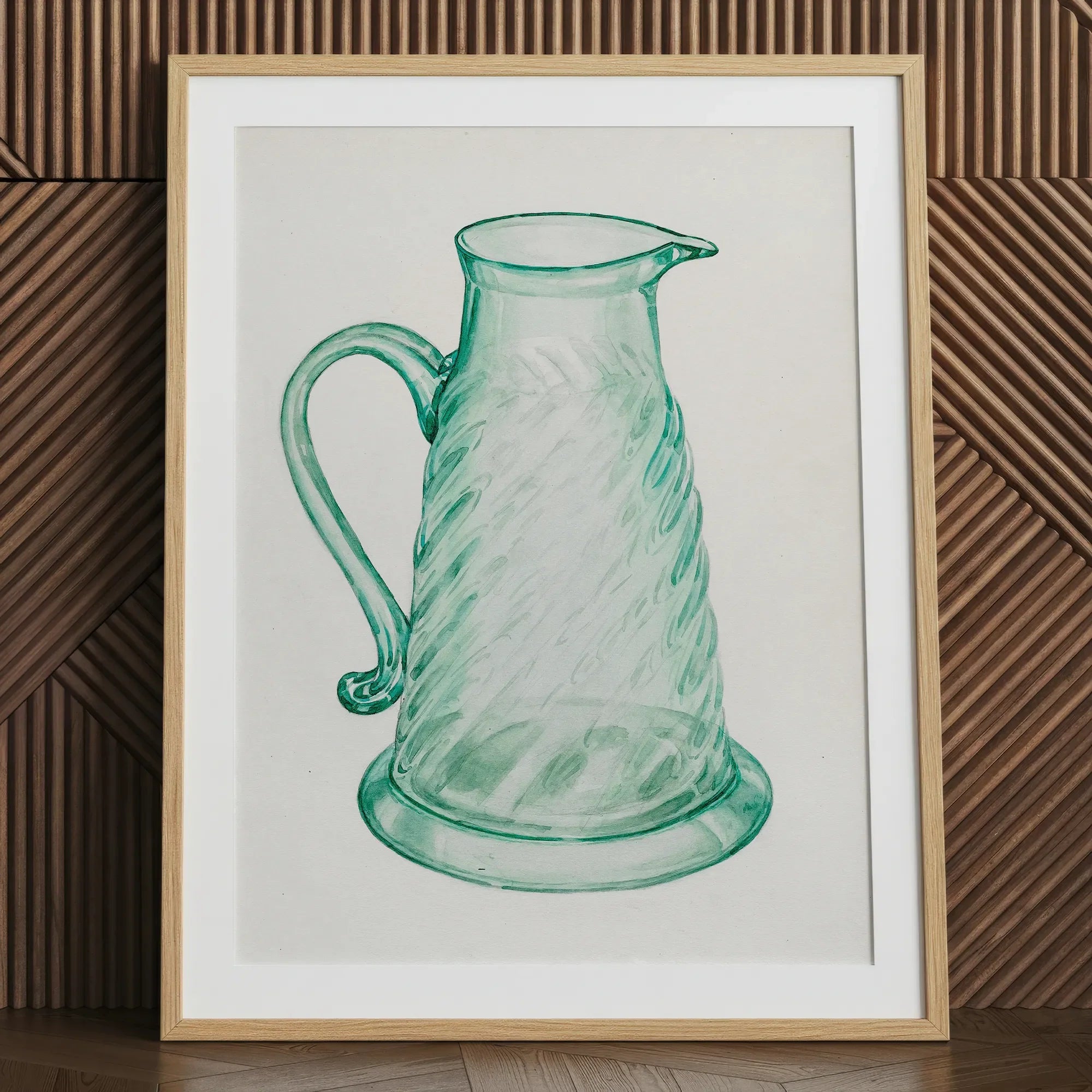 Imaginez cette impression ornant vos murs, ses teintes vertes éthérées projetant une lueur apaisante sur votre domaine culinaire. De sa base solide à son bord délicatement évasé, chaque courbe et bulle raconte une histoire d'ingéniosité et de style des années 1930. Ce n'est pas une simple décoration – c'est une ode cristalline à la douce simplicité d'une époque révolue.