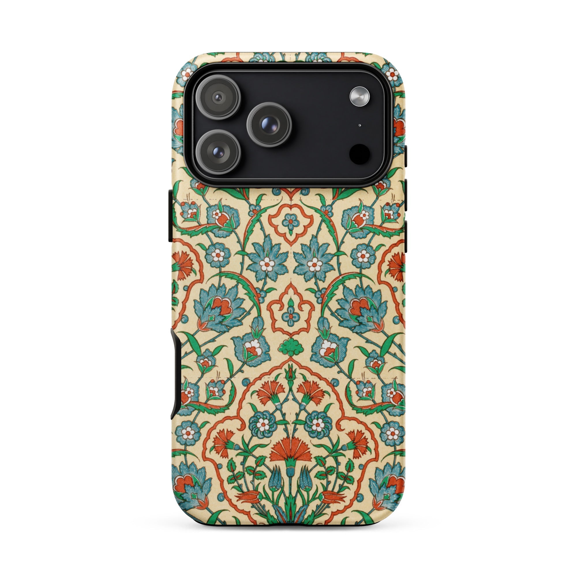 Immergez-vous dans la splendeur botanique de l'art islamique avec cela iPhone Case avec Émile Prisse D'Avennes "La Decoration Arabe 33." Ce mini-maître transforme votre appareil en une tuile Iznik portable, évoquant les jardins luxuriants des palais ottomans.