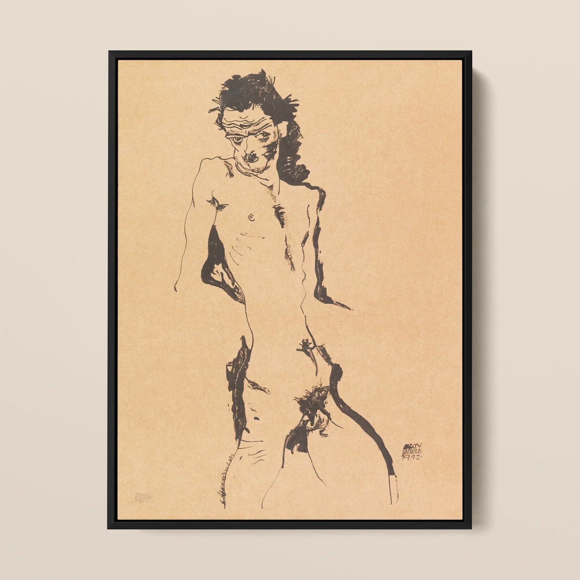 Lithographie de Nu Masculin - Egon Schiele Toile Encadrée