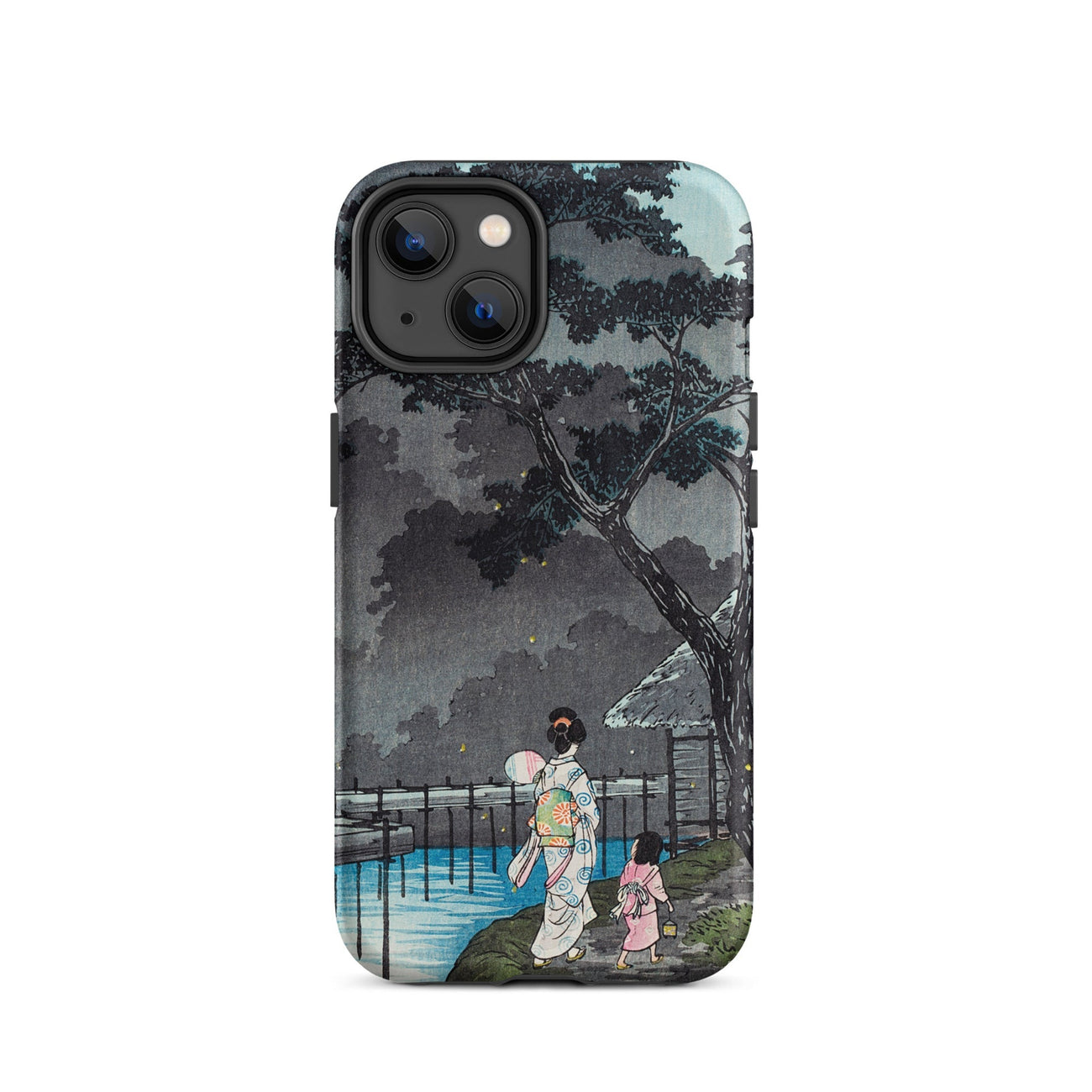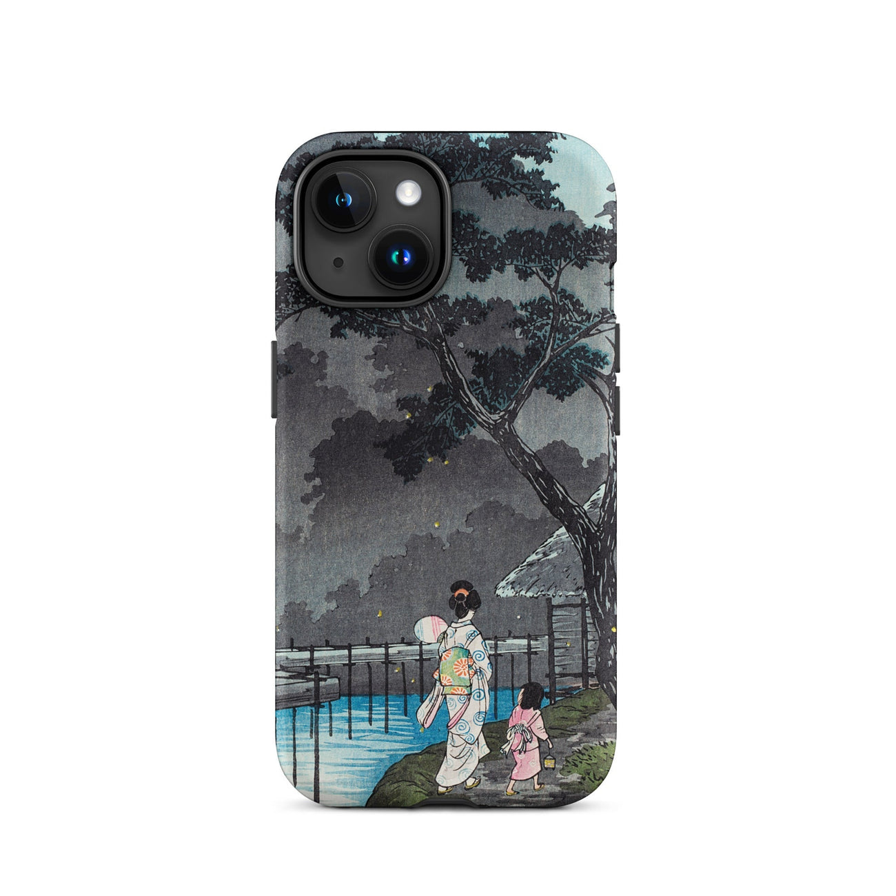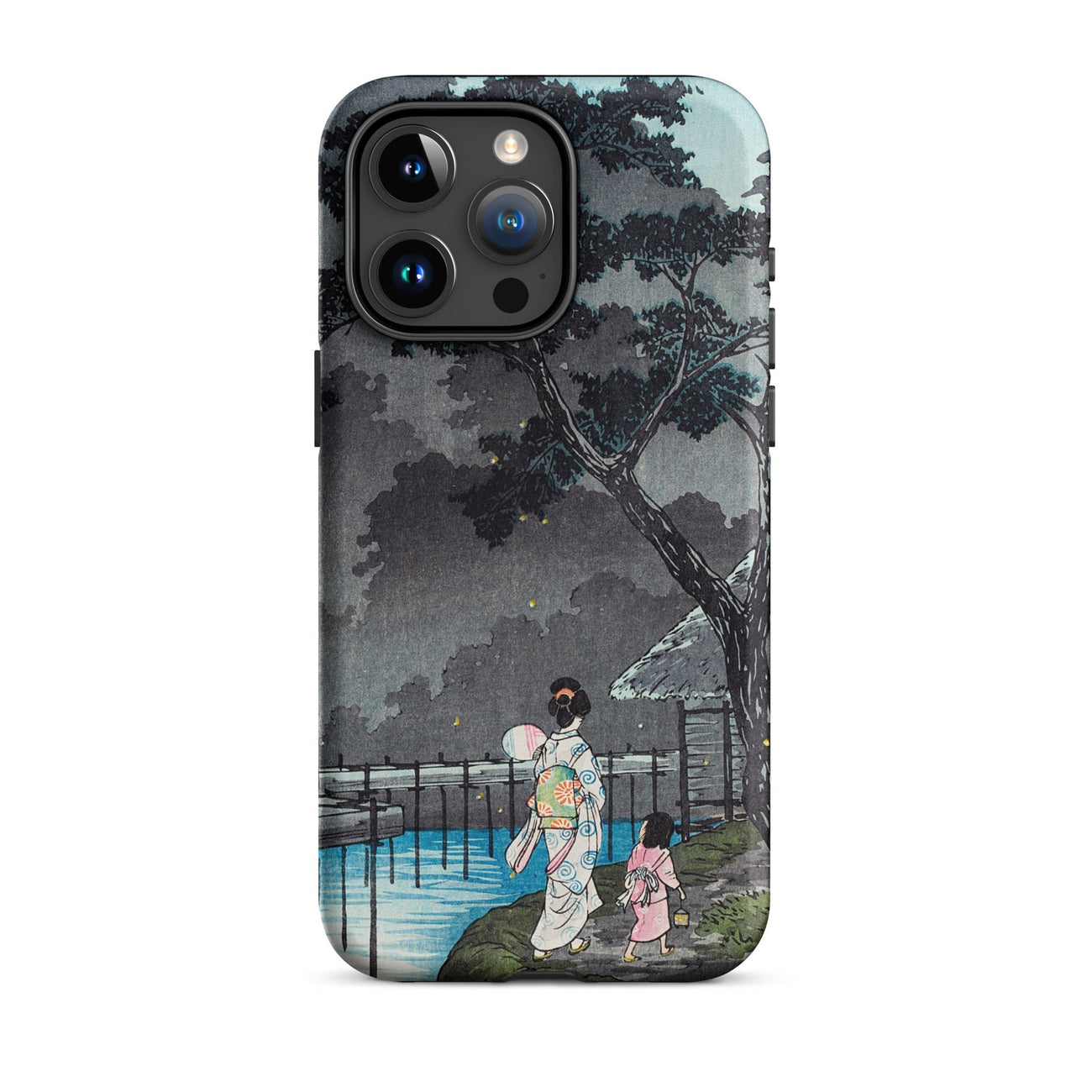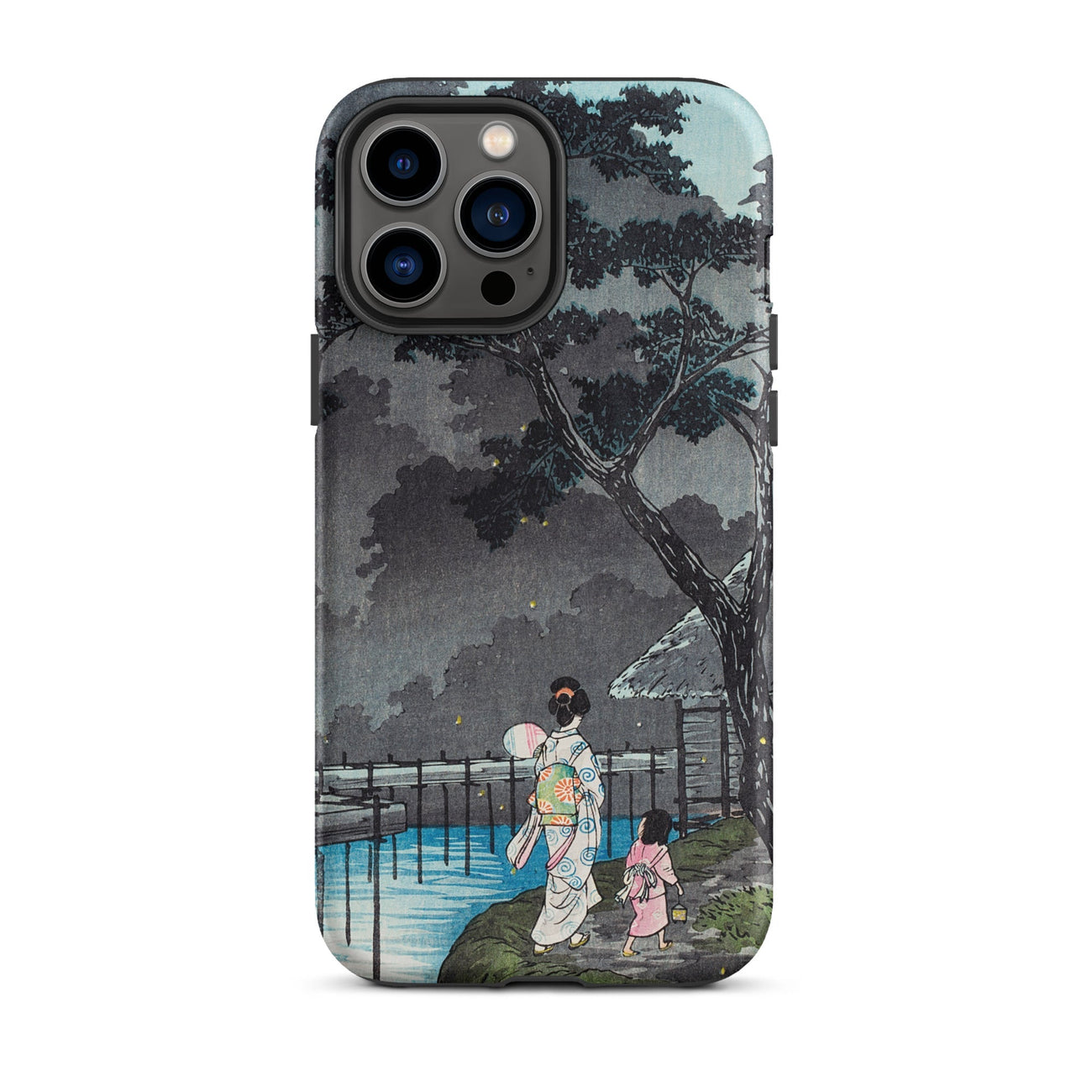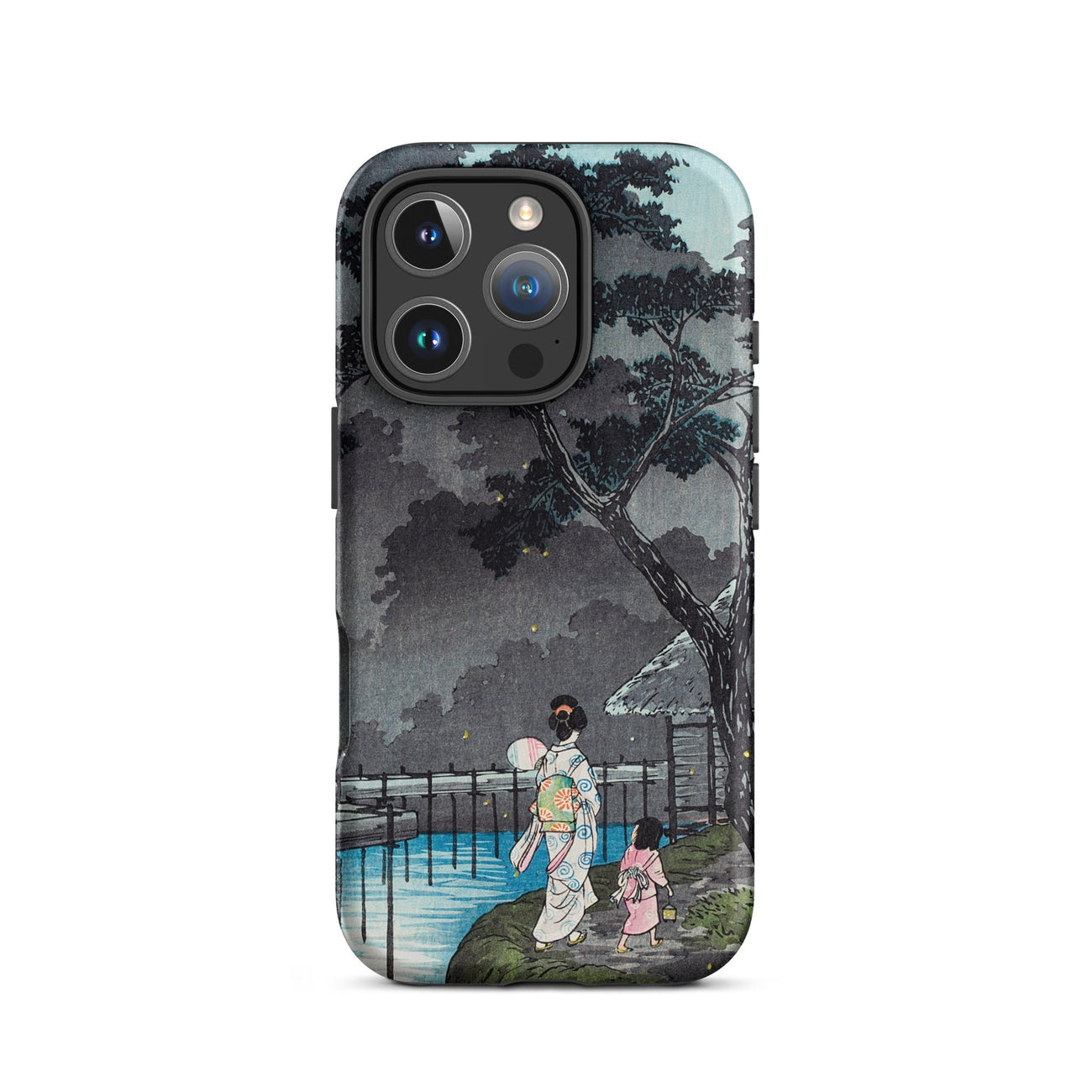 Le clair de lune se répand comme de l'argent liquide sur les berges tranquilles de Sekiguchi, où une mère et son enfant marchent sous le calme du crépuscule. Cette coque d'iPhone transforme la gravure sur bois Shin-Hanga de Hiroaki Takahashi en un chef-d'œuvre portable, riche en mono no aware—la tristesse éphémère de la beauté.