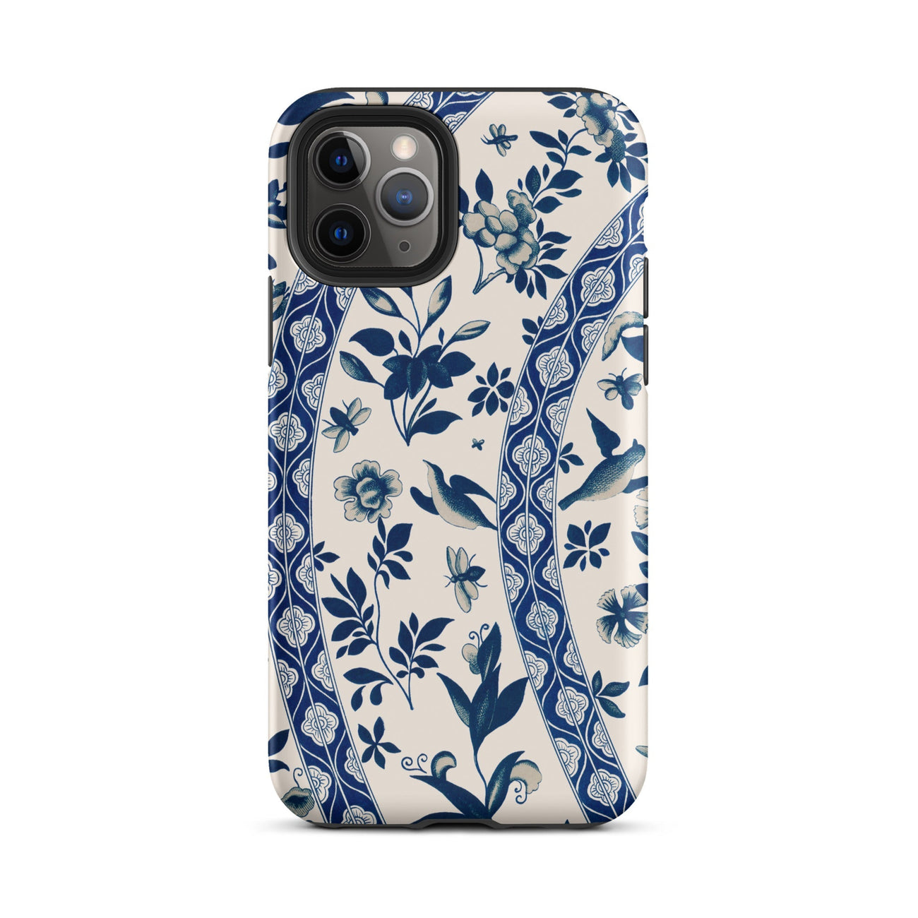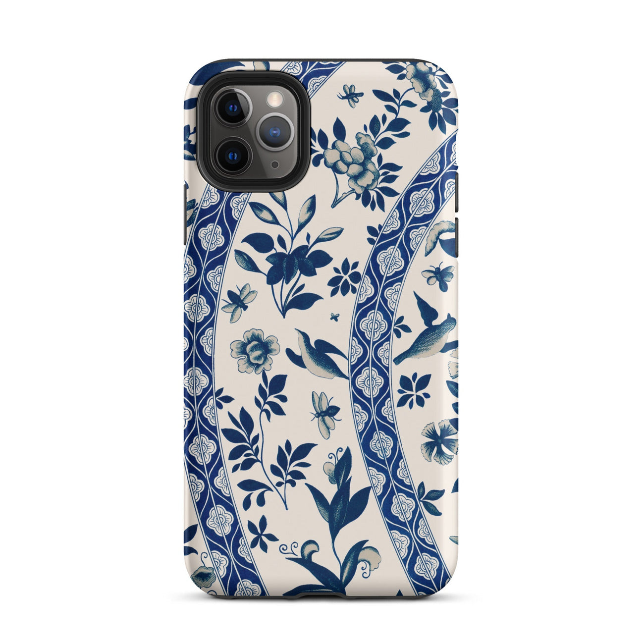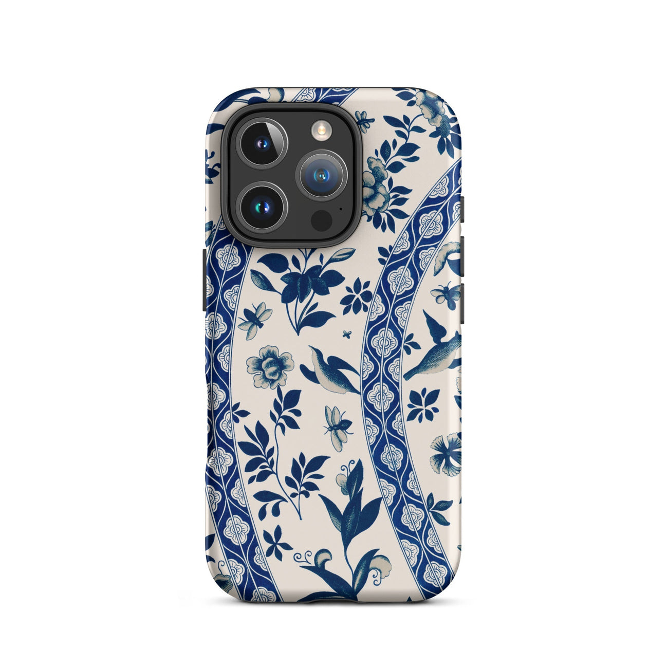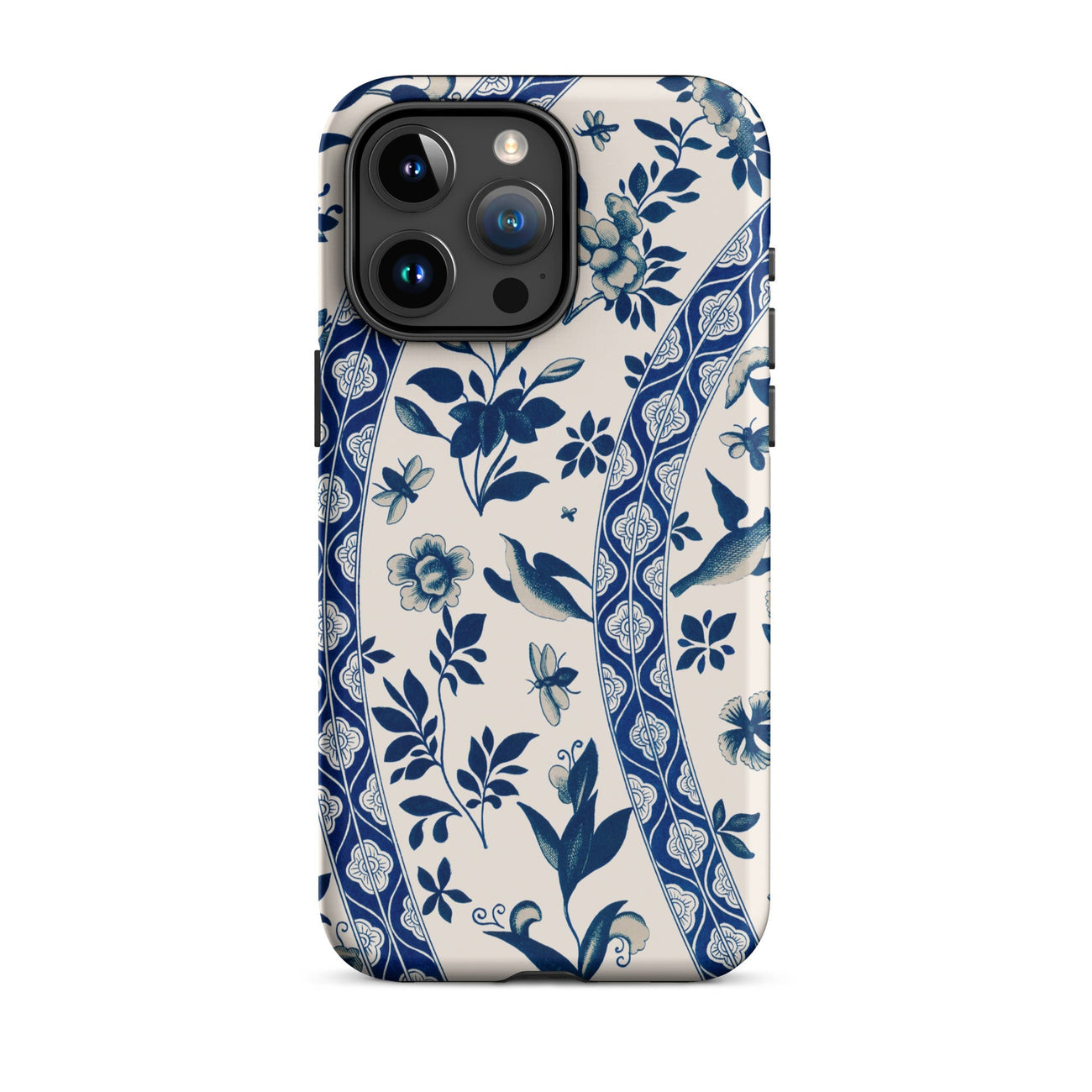 Chinoiserie chirps pendant votre nouveau iPhone Case chante. Rêves en porcelaine bleu-blanc prenant le vol sur votre appareil. La vision victorienne d'Owen Jones danse avec l'élégance orientale. Chaque pétale et feuille un murmure de dynasties oubliées. Des libellules délicates flottant entre les branches en fleurs, transportant des secrets de routes en soie et des villes interdites.