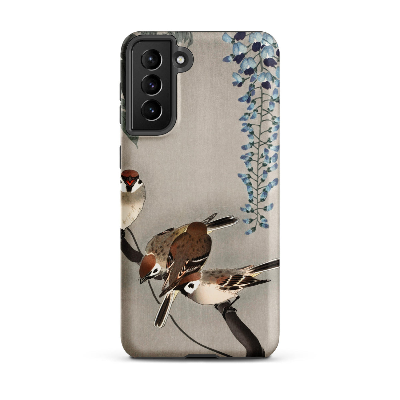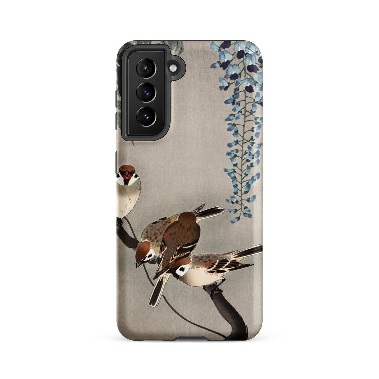 Cette coque Samsung encadre la scène sans l'encombrer, laissant de l'espace pour respirer entre l'oiseau et la fleur. La lignée kachō-e de l'œuvre d'art résonne sous sa surface moderne, reliant le pinceau de l'ère Meiji à l'appareil poli d'aujourd'hui.