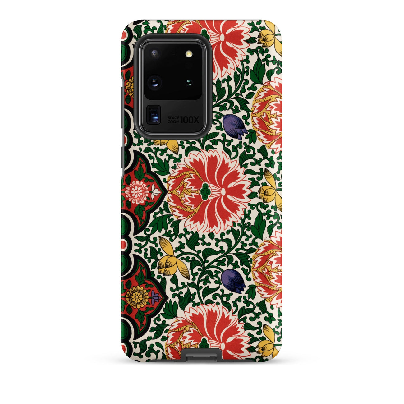 Cette coque Samsung contient plus qu'un ornement; elle porte l'opulence disciplinée d'un maître créateur de motifs traduisant la splendeur botanique orientale pour les intérieurs occidentaux. Un panneau portable d'histoire, sa palette et sa symétrie promettent des rencontres quotidiennes avec l'architecture délicate et durable de l'art.