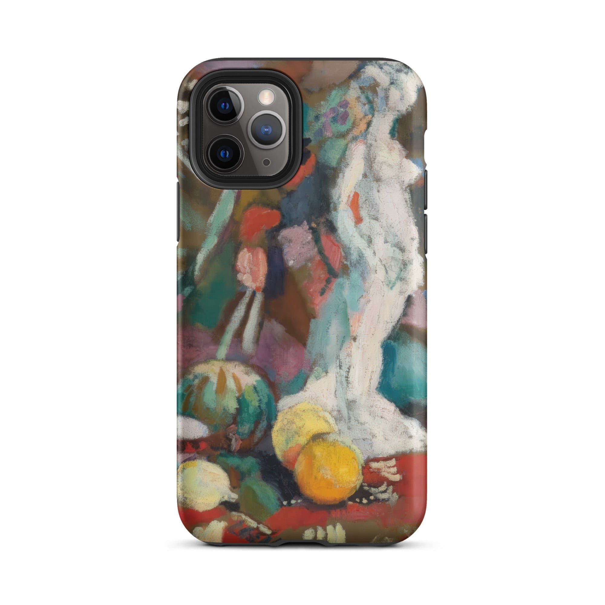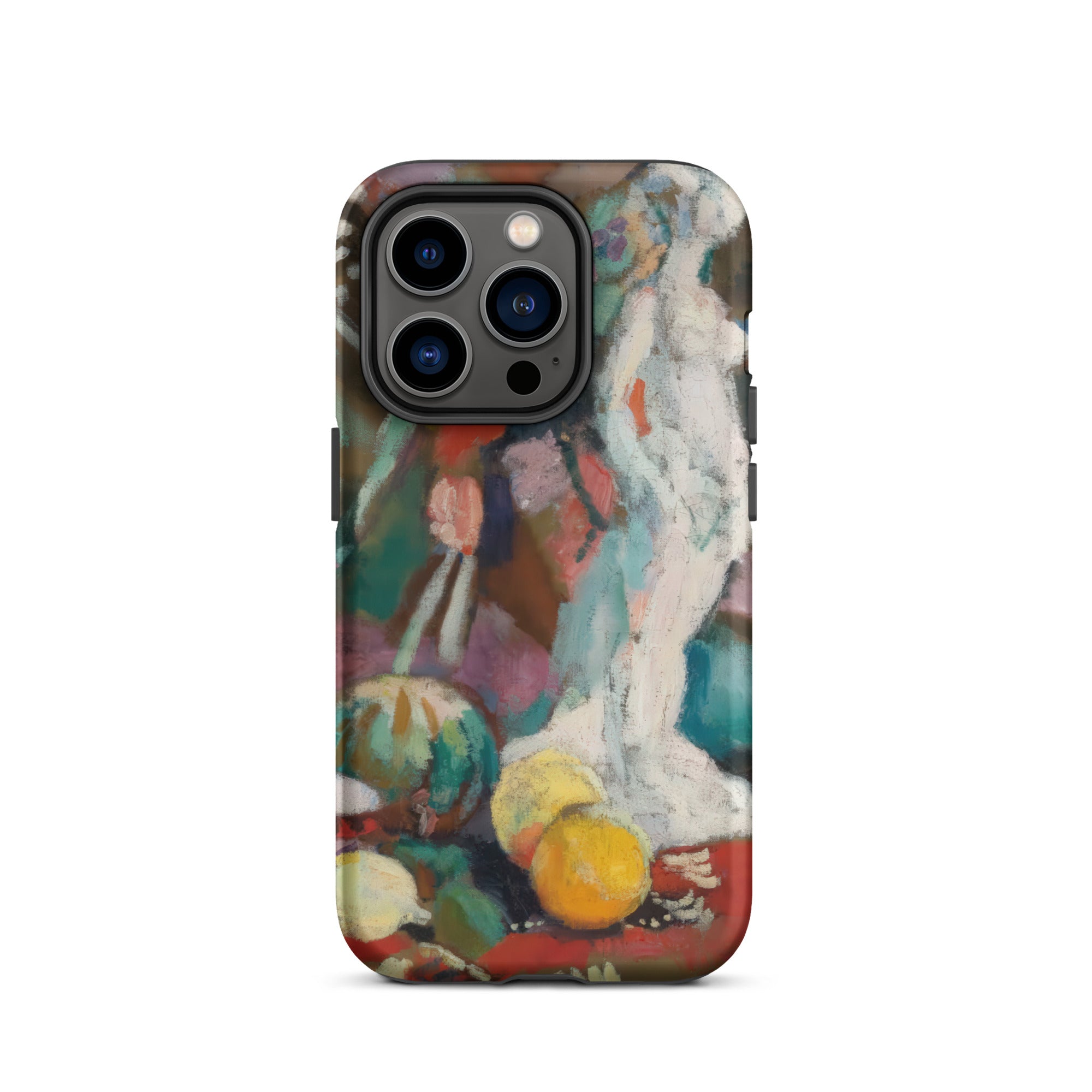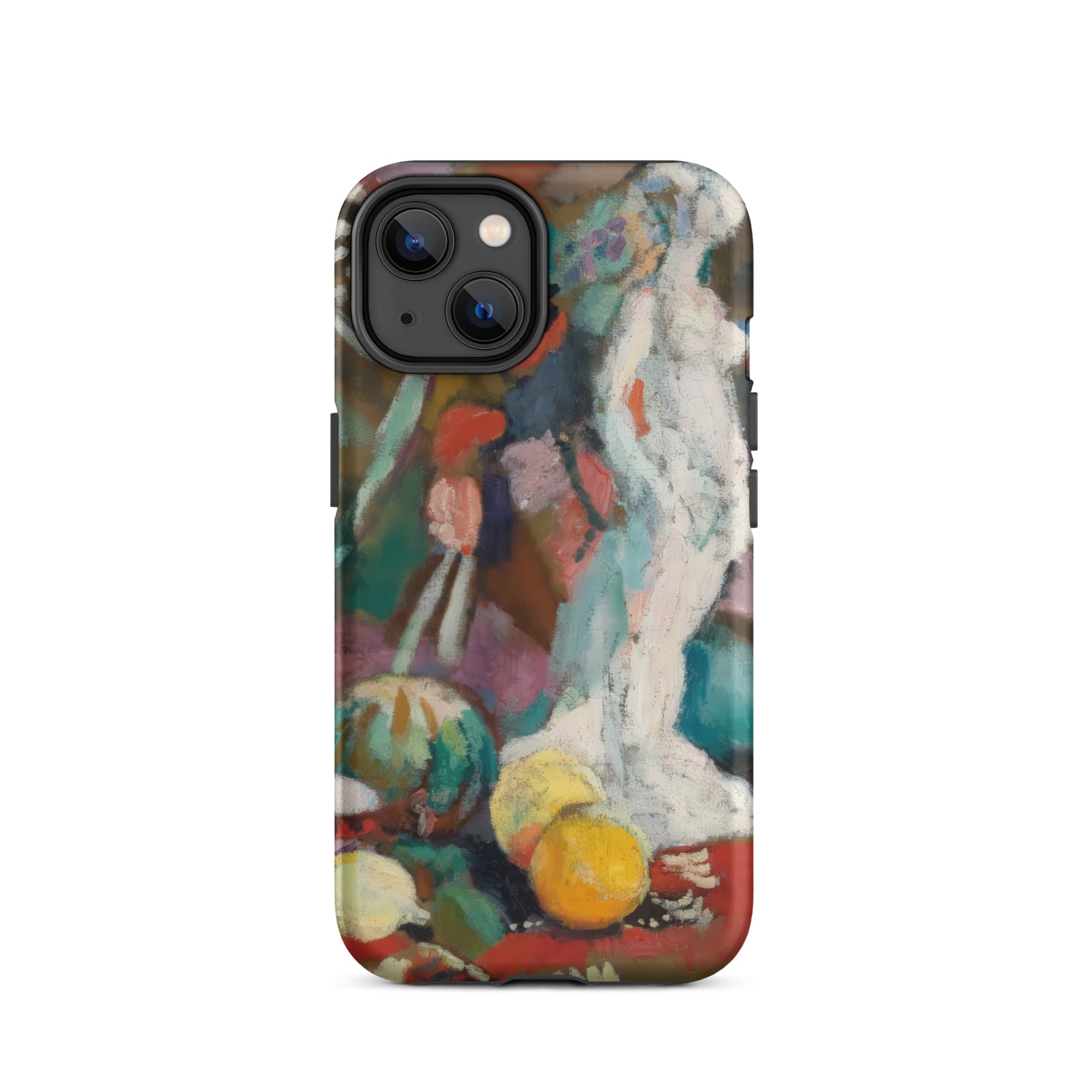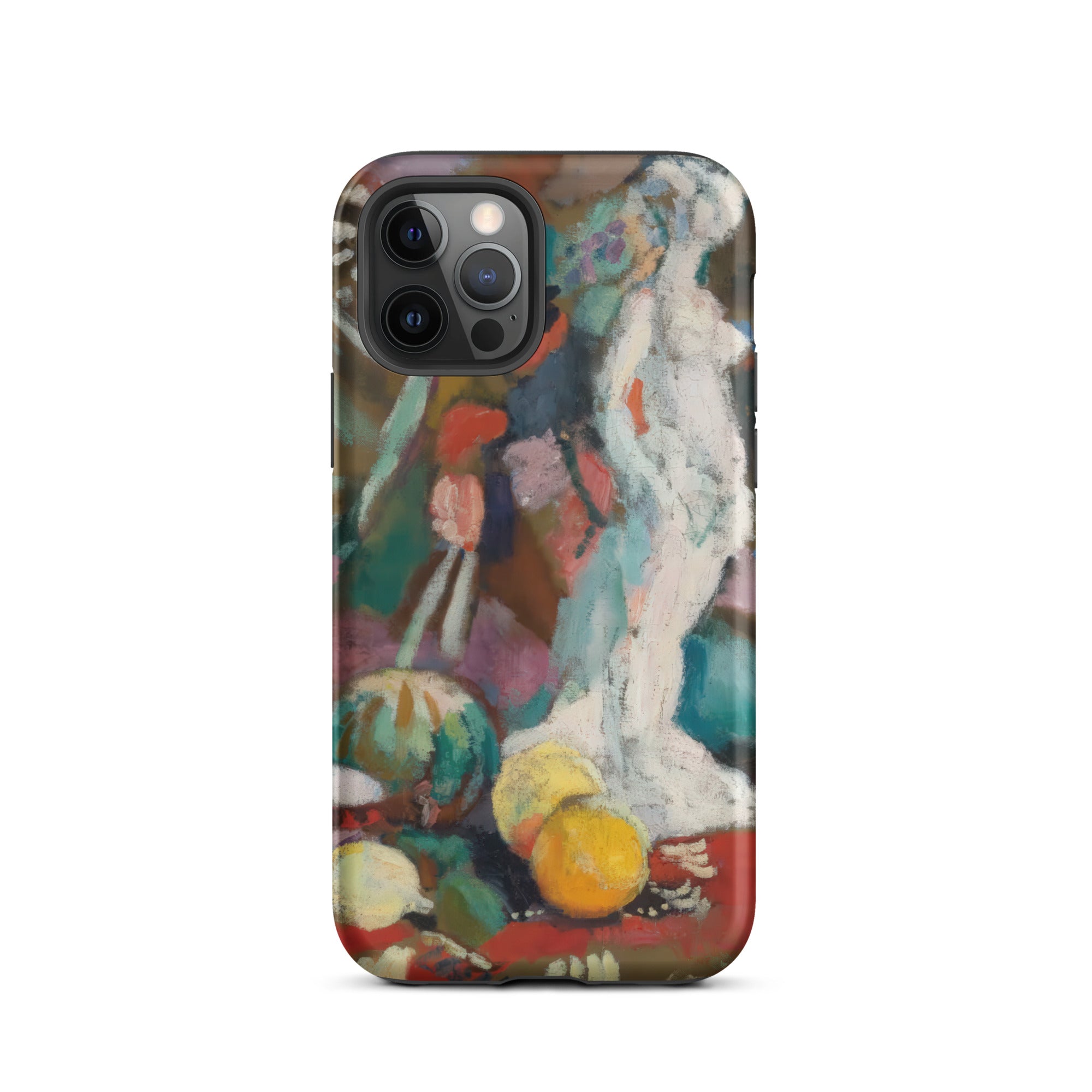 Imprégné de l'intensité fiévreuse du fauvisme, cette coque iPhone de Henri Matisse transforme votre appareil en un portail de rébellion moderniste. Nature morte avec figure en plâtre palpite avec une couleur brute et déchaînée—le turquoise et le vermillon s'affrontent, dissolvant la forme en sensation. La sculpture blanche, un écho de la tradition gréco-romaine, se dresse spectrale au milieu d'une nature morte onirique, où la perspective aplatie et le coup de pinceau sauvage défient la rigidité du réalisme classique.