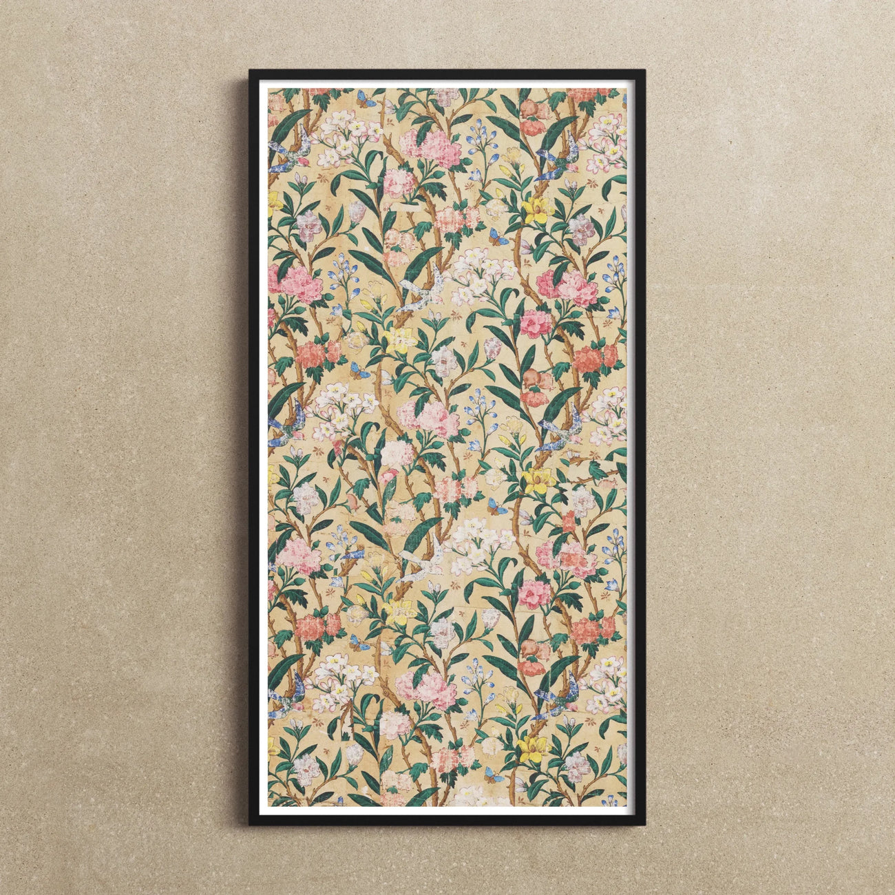 Cette conception de papier peint transcende une simple ornementation, vous invitant à s'immerger dans un monde où les frontières entre l'Est et l'Ouest, et la beauté de la nature règne en maître. Son imagerie vive et ses détails méticuleux en font un chef-d'œuvre intemporel de l'art botanique victorien.