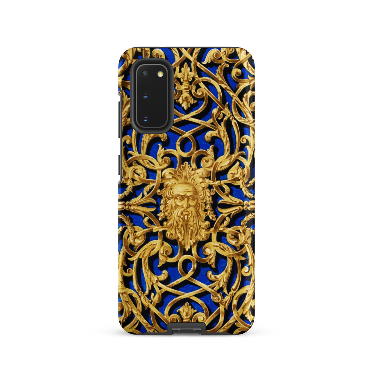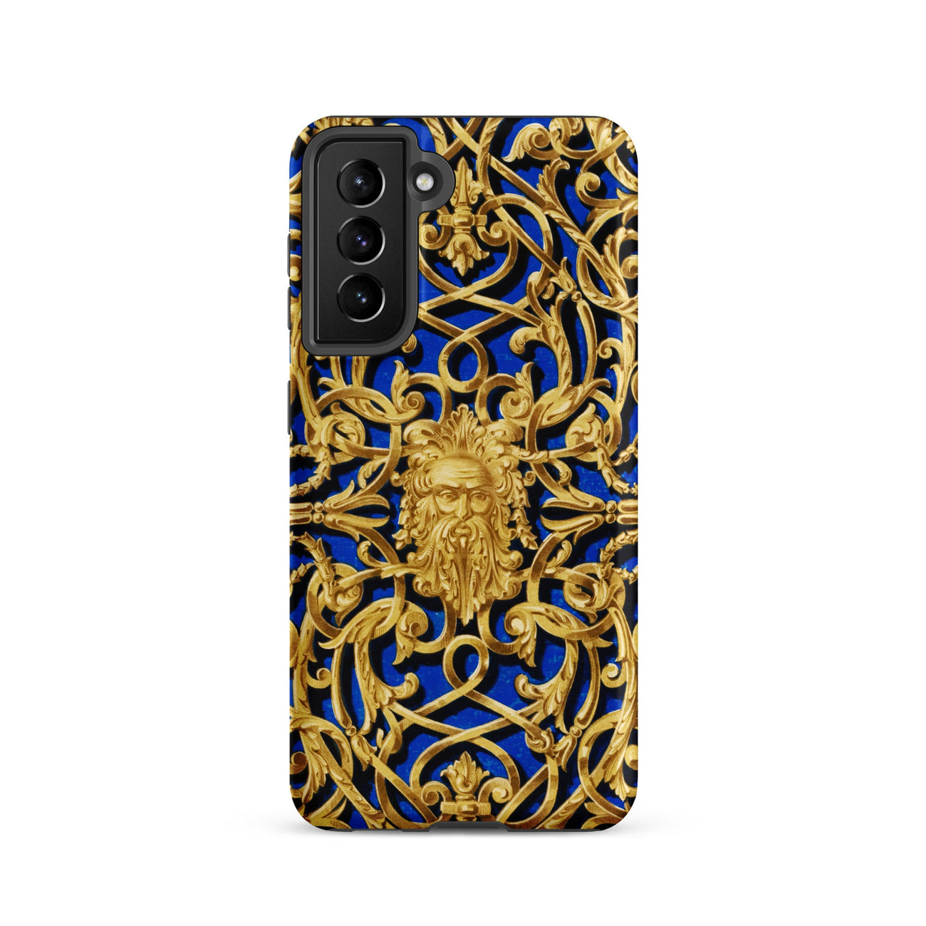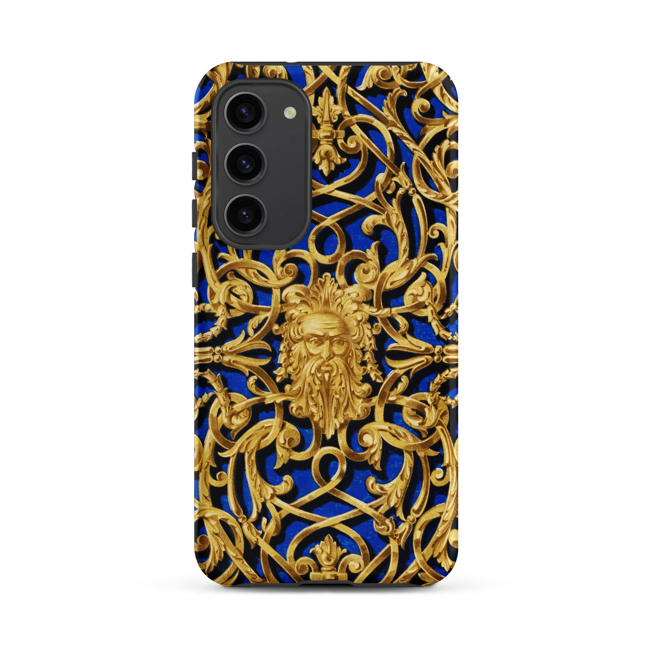 Inspiré par la maîtrise des arts décoratifs de Matthew Digby Wyatt, cette coque Samsung canalise la splendeur du fer forgé du renouveau gothique, la brillance du bronze coulé et la précision de la gravure artisanale. Chaque courbe suggère un travail de volutes forgé dans le feu, refroidi sous des cieux cobalt, et poli pour un portail de palais.