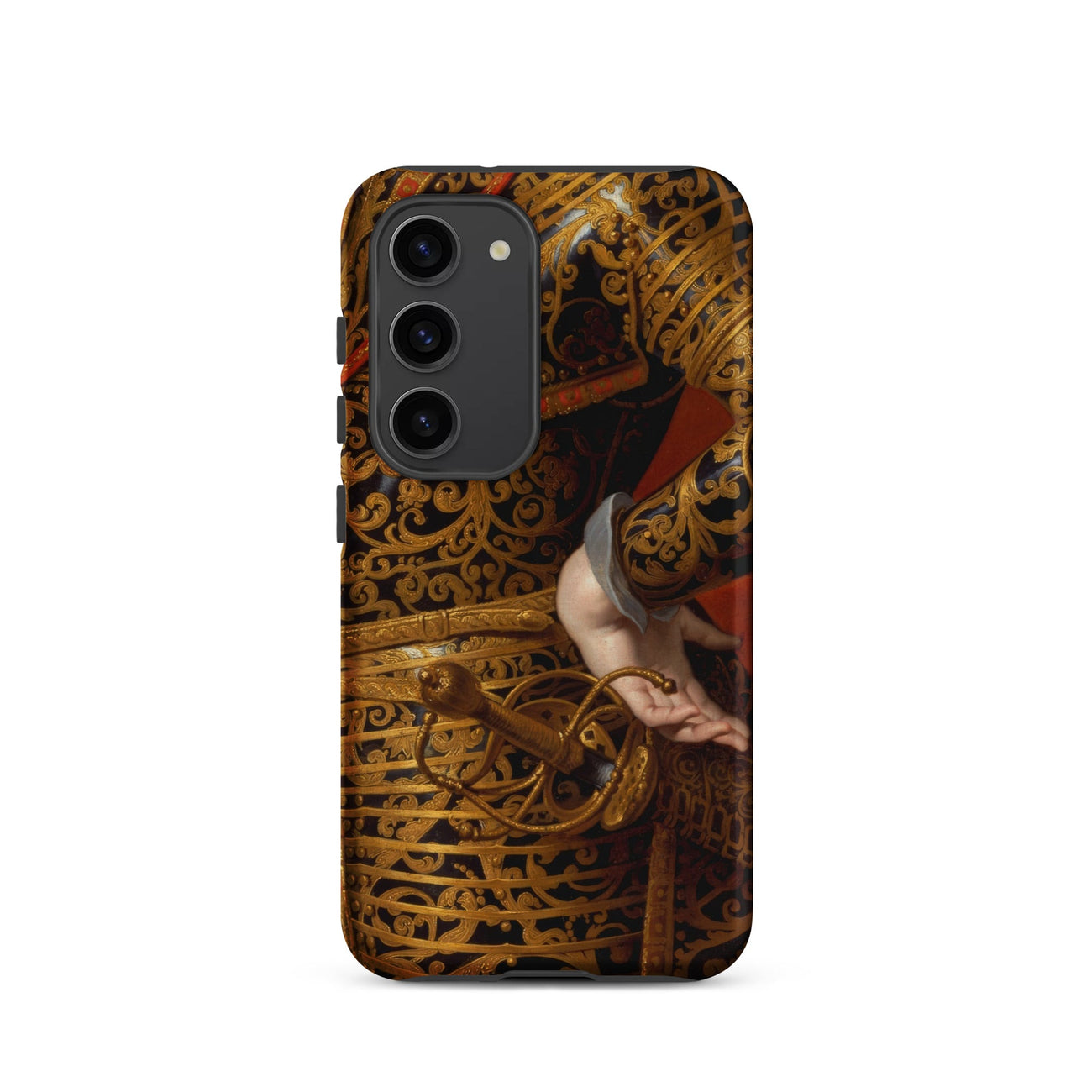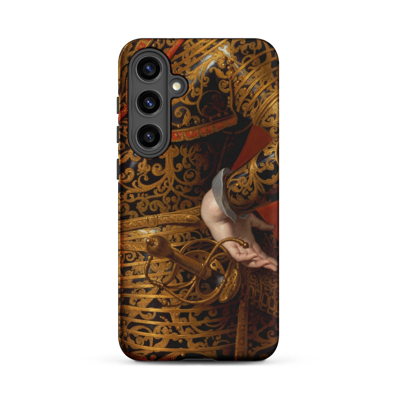 Sur votre Samsung, ce fragment devient un portrait de cour portable—une armure polie pour l'éternité, un acier noirci berçant des veines d'or, le bras d'un monarque courbé avec une grâce calculée. La grandeur de l'histoire voyage dans votre paume, sa surface vivante des murmures du pinceau, de la dorure et de l'ambition souveraine.