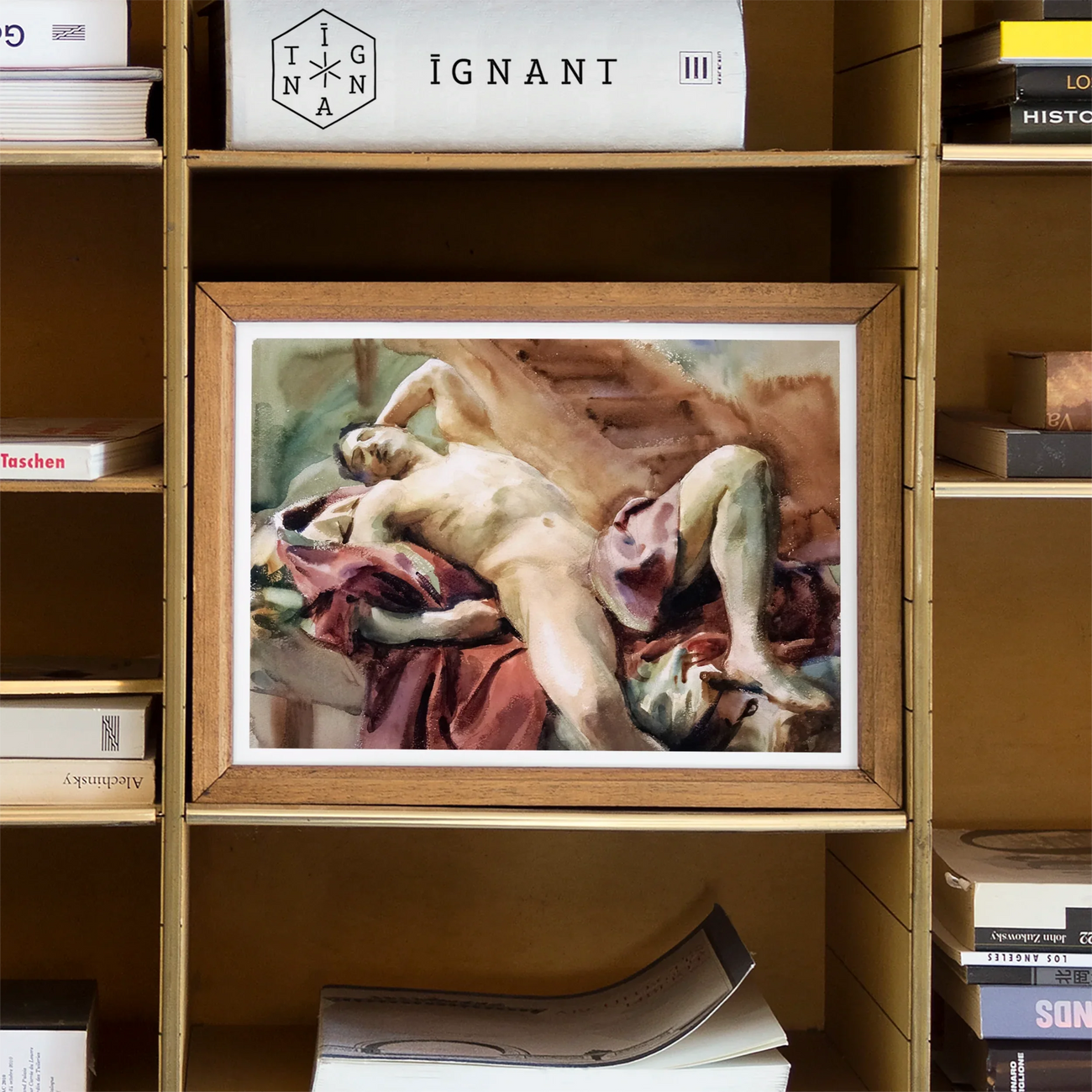 Dans "Nude Portrait of Nicola d’Inverno" de John Singer Sargent, nous sommes entraînés dans un tableau gay intime de repos languid. Où la forme du modèle est à la fois un objet de beauté sereine et une étude de la vulnérabilité humaine. La technique de l'aquarelle de Sargent, avec ses lavages de liquide et son ombrage délicat, capture le jeu de la lumière et de l'ombre à travers le corps musclé et détendu de Nicola.