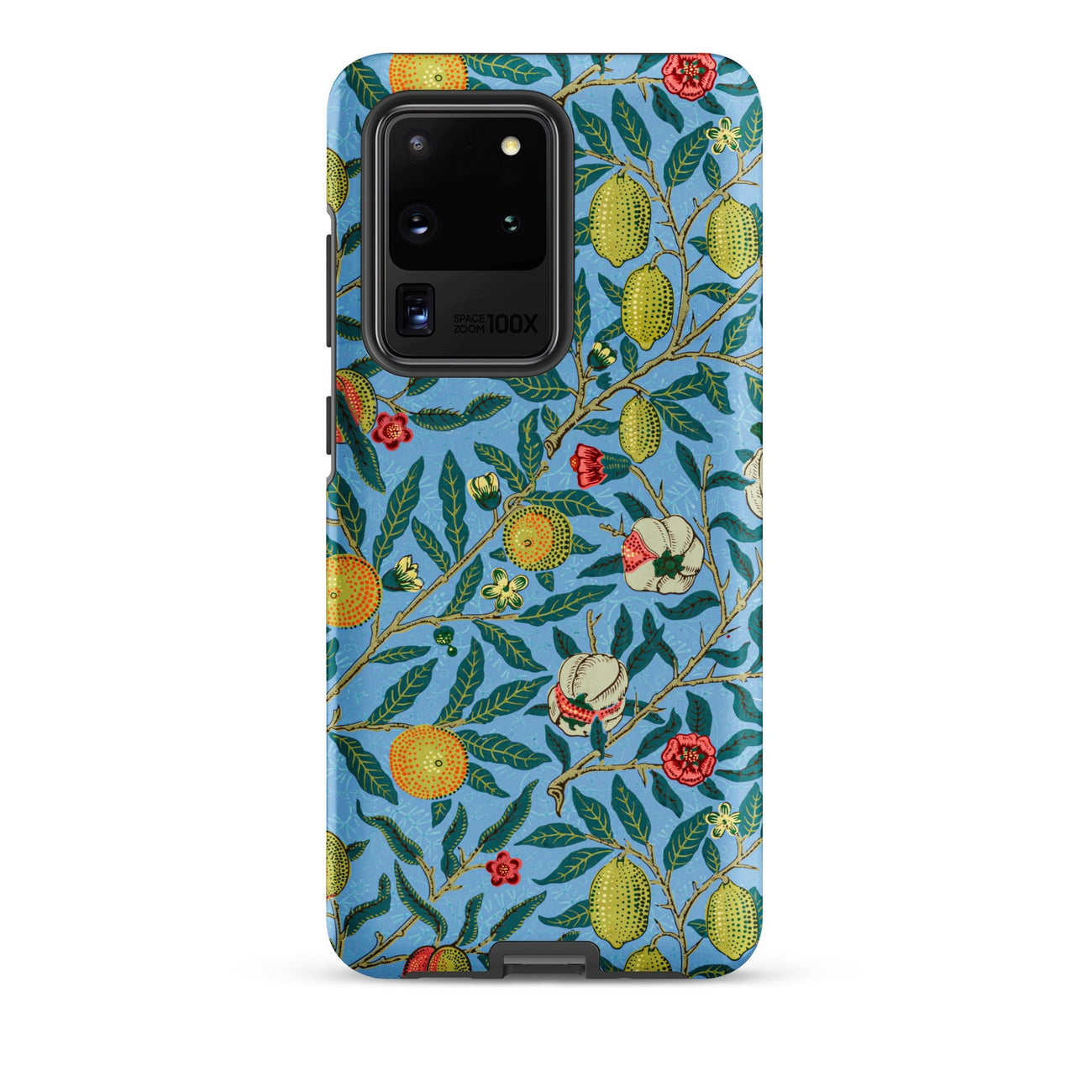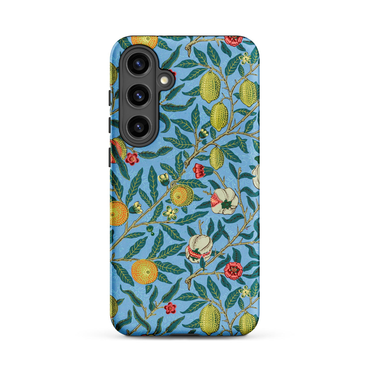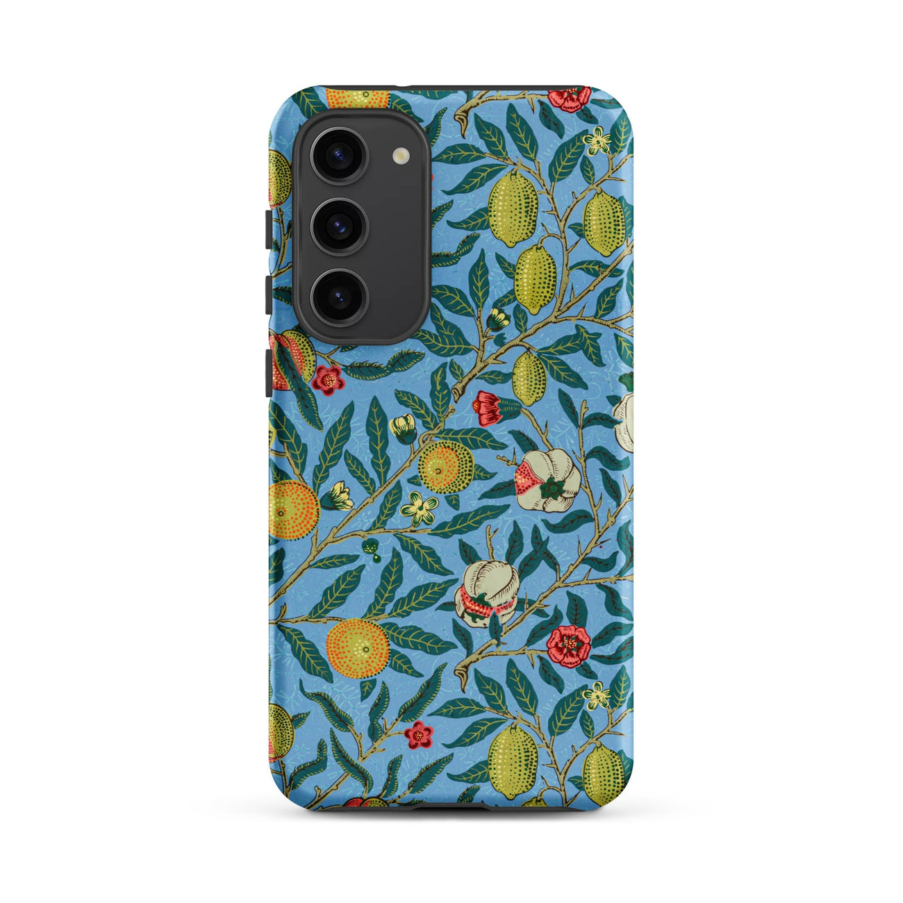 Chaque fruit gonfle dans le rythme dessiné à la main de William Morris, les graines et les écorces texturées avec la patience d'un graveur. Les feuilles s'inclinent vers une lumière invisible, leurs veines aussi nettes que des lignes de gravure, chaque jonction étant une étude de la croyance Arts and Crafts que la beauté appartient au quotidien. La surface du boîtier porte cette conviction dans votre paume : l'abondance du verger encadrée par le dessin victorien, le pigment stable face au passage des heures.