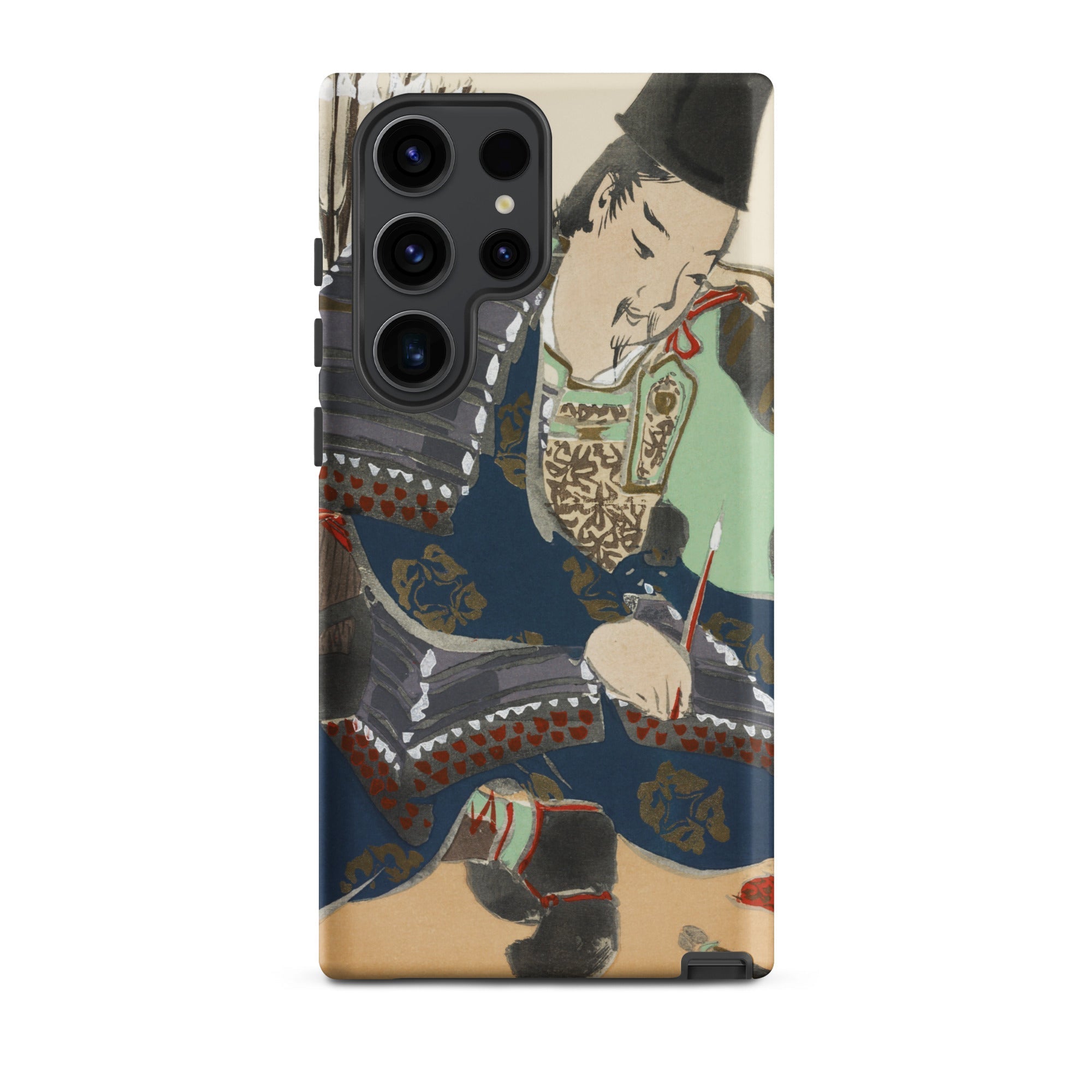 Le boîtier Samsung devient un rouleau portable, portant l'élégance de la renaissance Rimpa de Momoyogusa, les textiles superposés, le carquois rempli de flèches, la cuirasse ornée de crêtes. Ici, chaque pli du haori en soie, chaque motif doré, murmure de la maîtrise du kyuba et des campagnes saisonnières sous des bannières peintes.