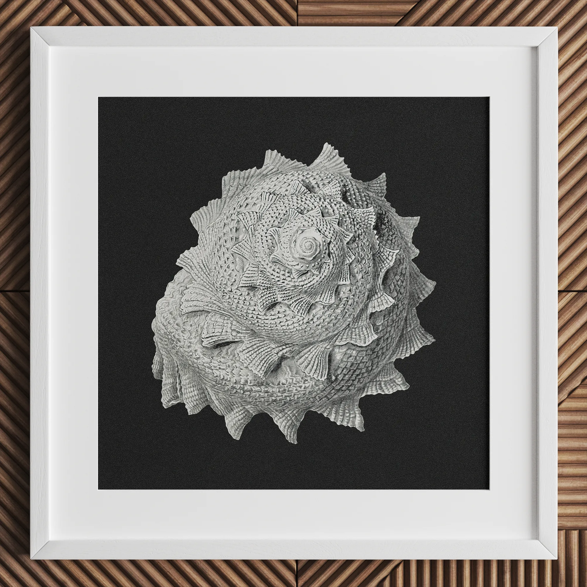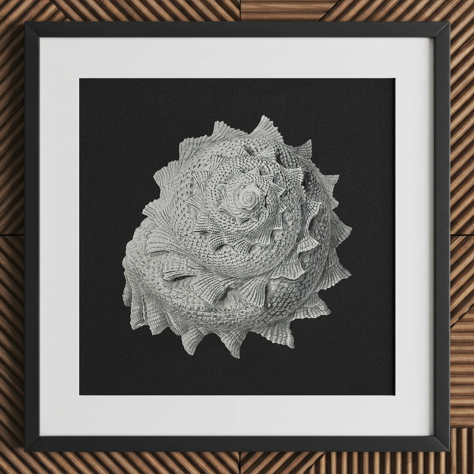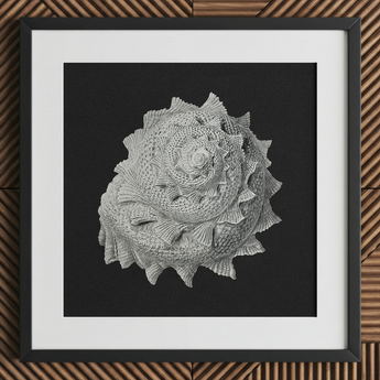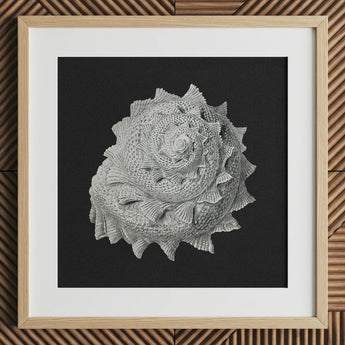 Le chef-d'œuvre monochromatique capture la forteresse calcifiée d'un gastéropode, ses verticilles un labyrinthe de la géométrie sacrée de la nature. Vous retrouverez chaque crête et sillon, émerveillant des textures complexes gravées par la main du patient d'Evolution.