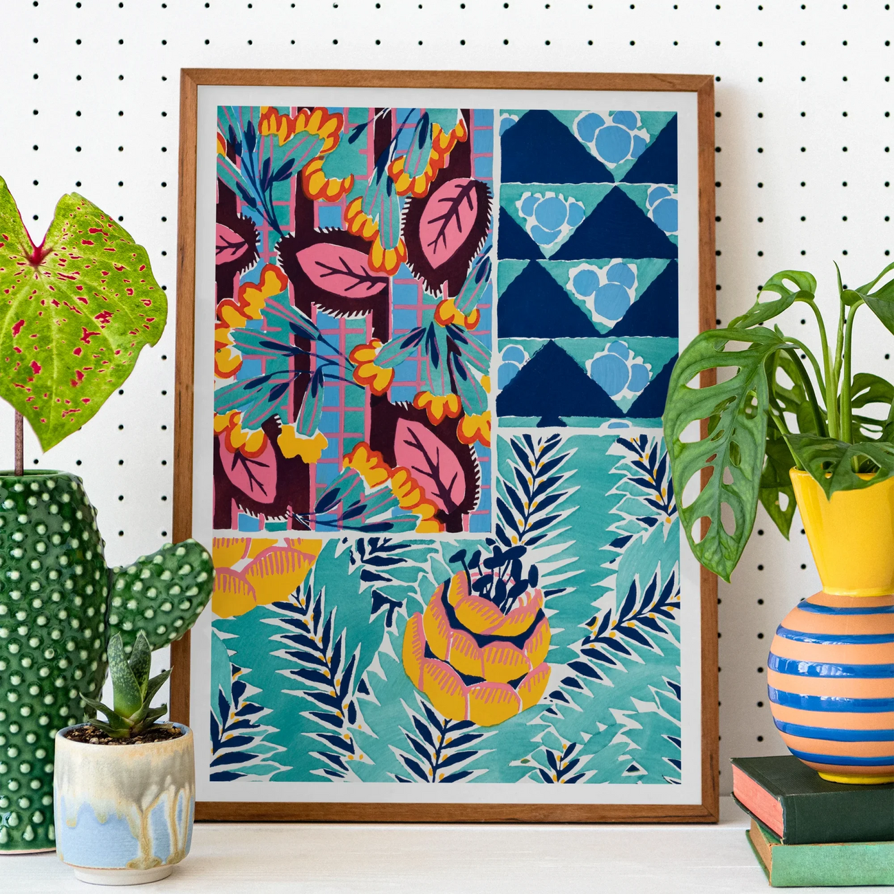 Cette impression ne se décorera pas simplement; Cela va éduquer et inspirer. Les antécédents de Séguy en entomologie infuse chaque feuille et fleur stylisées avec une précision scientifique, transformant votre espace en une galerie organisée de merveilles naturelles. La palette de couleurs audacieuse - de la turquoise électrique à l'orange flamboyant - capture le zeitgeist d'une société embrassant l'innovation chromatique.