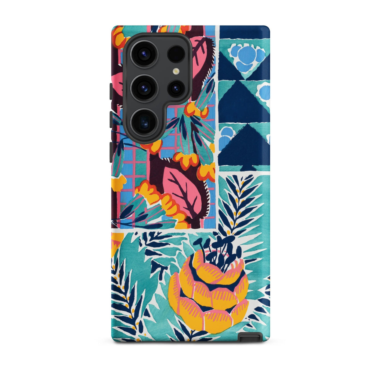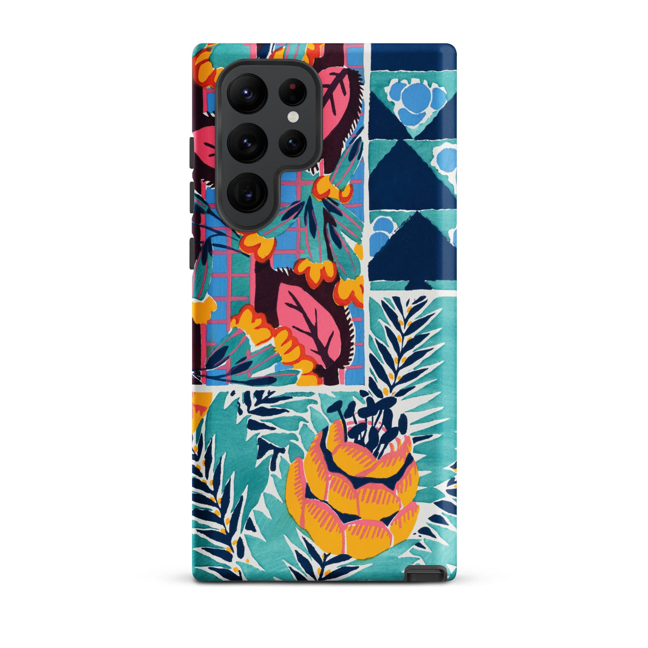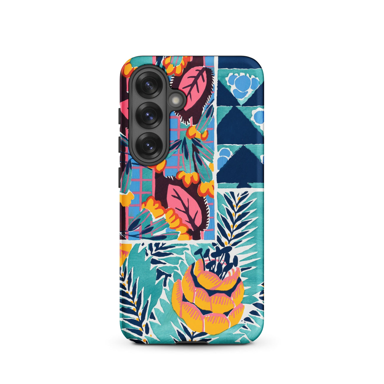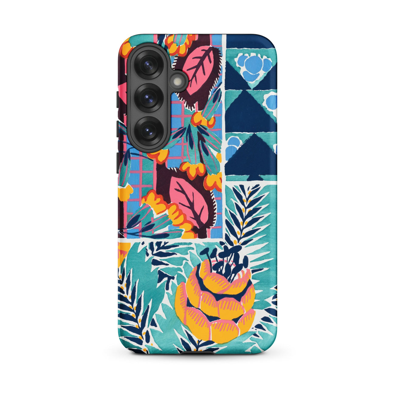 Cette coque Samsung transforme le langage tactile de la soie imprimée des années 1920 et du papier peint en armure pour votre appareil—luxuriante, archivistique et résolument ornementale.