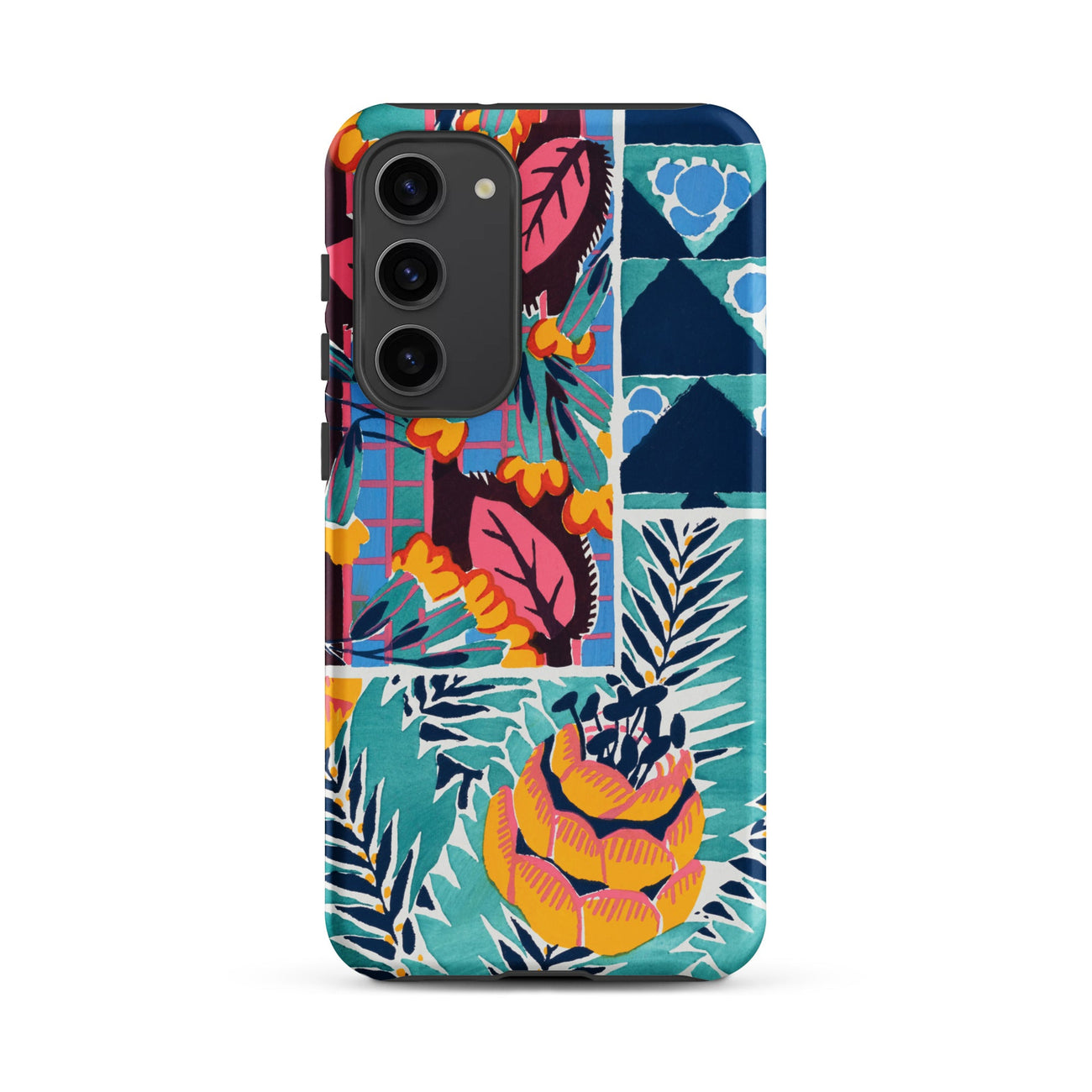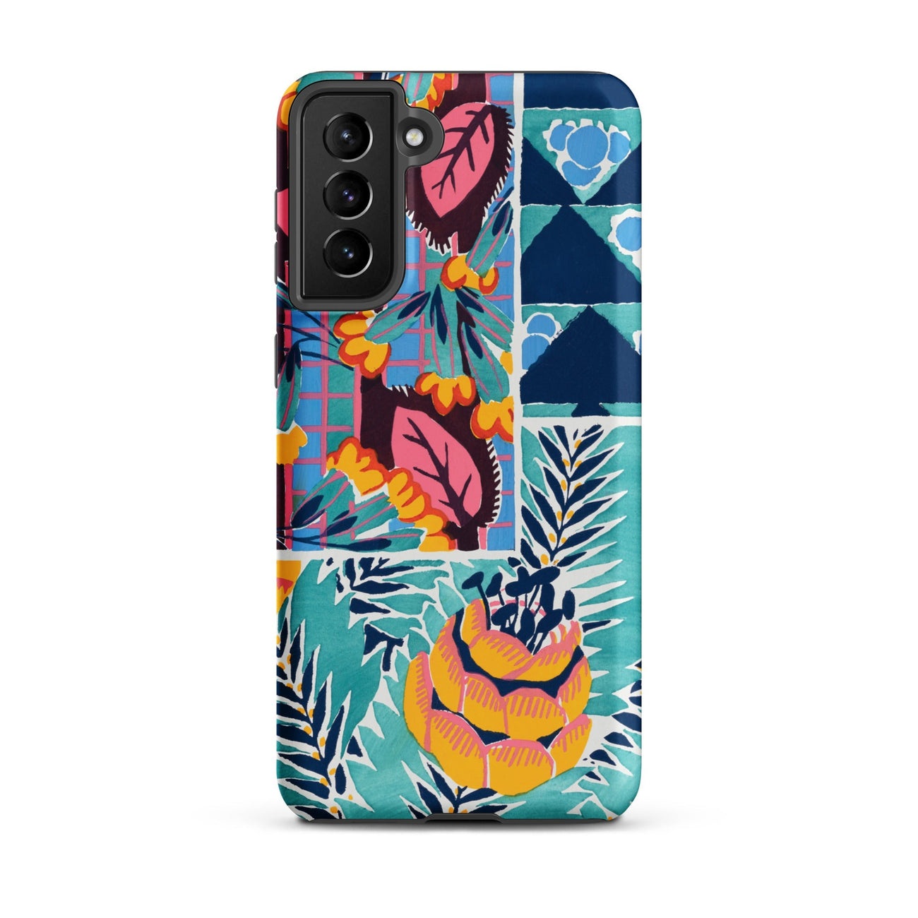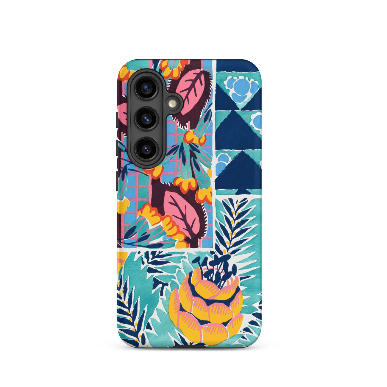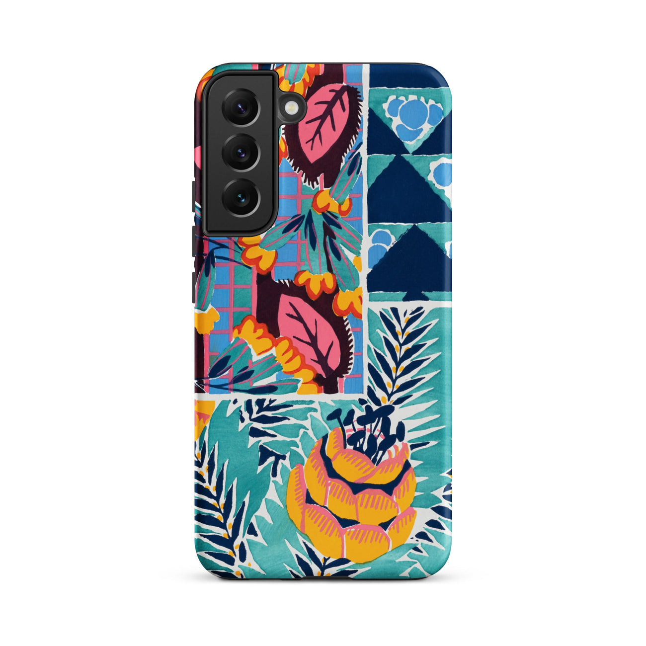 Cette coque Samsung transforme le langage tactile de la soie imprimée des années 1920 et du papier peint en armure pour votre appareil—luxuriante, archivistique et résolument ornementale.
