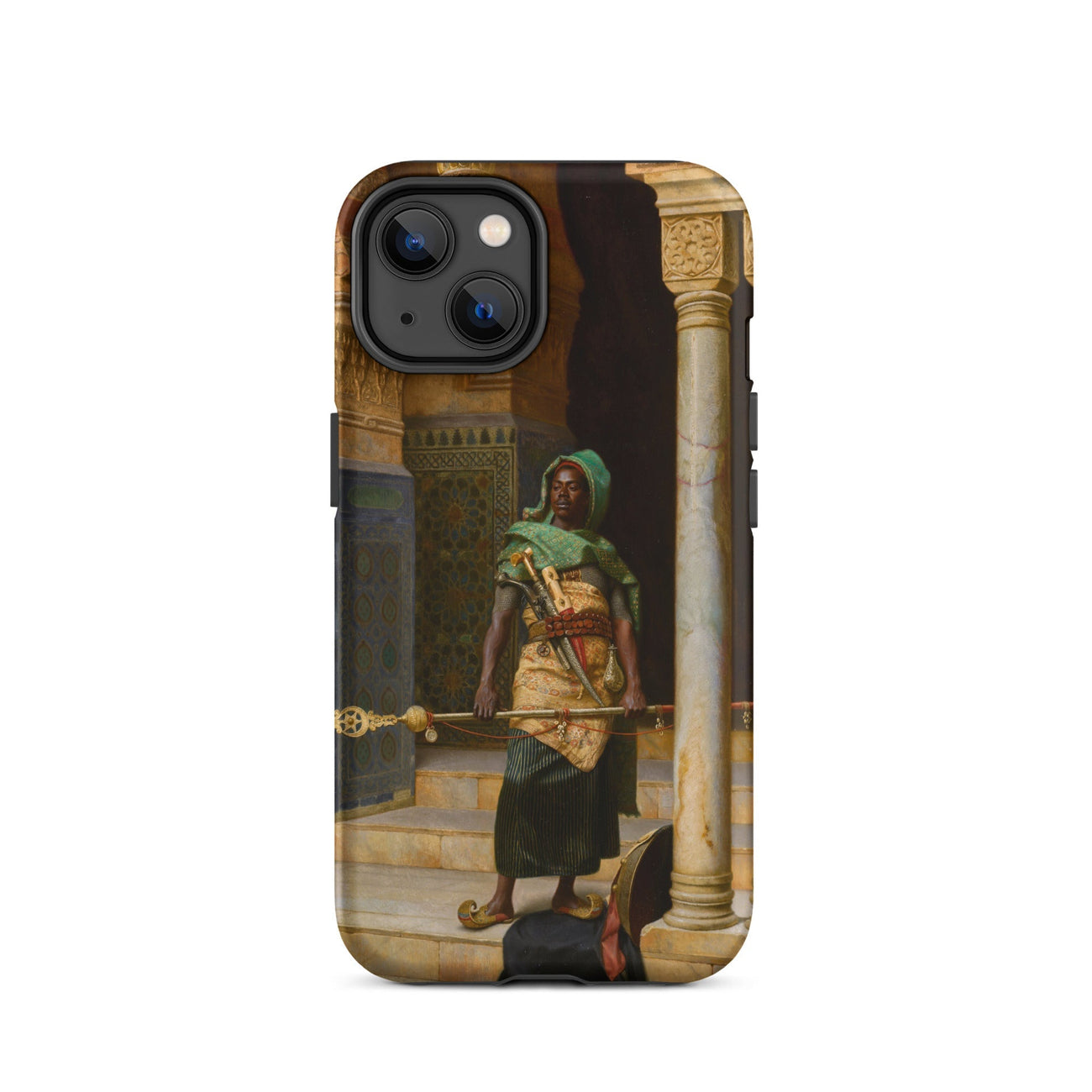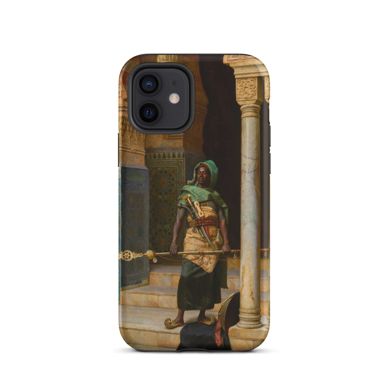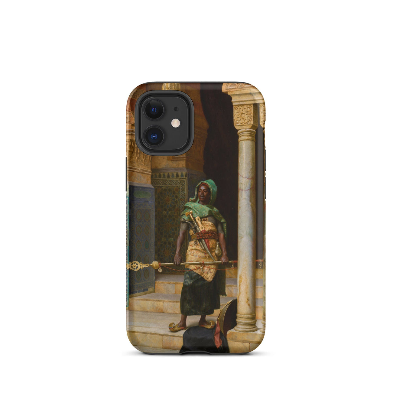 Plongez-vous dans le monde envoûtant de "The Nubian Guard" de Ludwig Deutsch. Cette captivante coque iPhone présente un chef-d'œuvre de l'art orientaliste, vous transportant dans un royaume de détails exquis et de symbolisme culturel riche. Le travail virtuose de Deutsch donne vie au guerrier nubien stoïque, sa peau sombre contrastant brillamment avec le décor orné.
