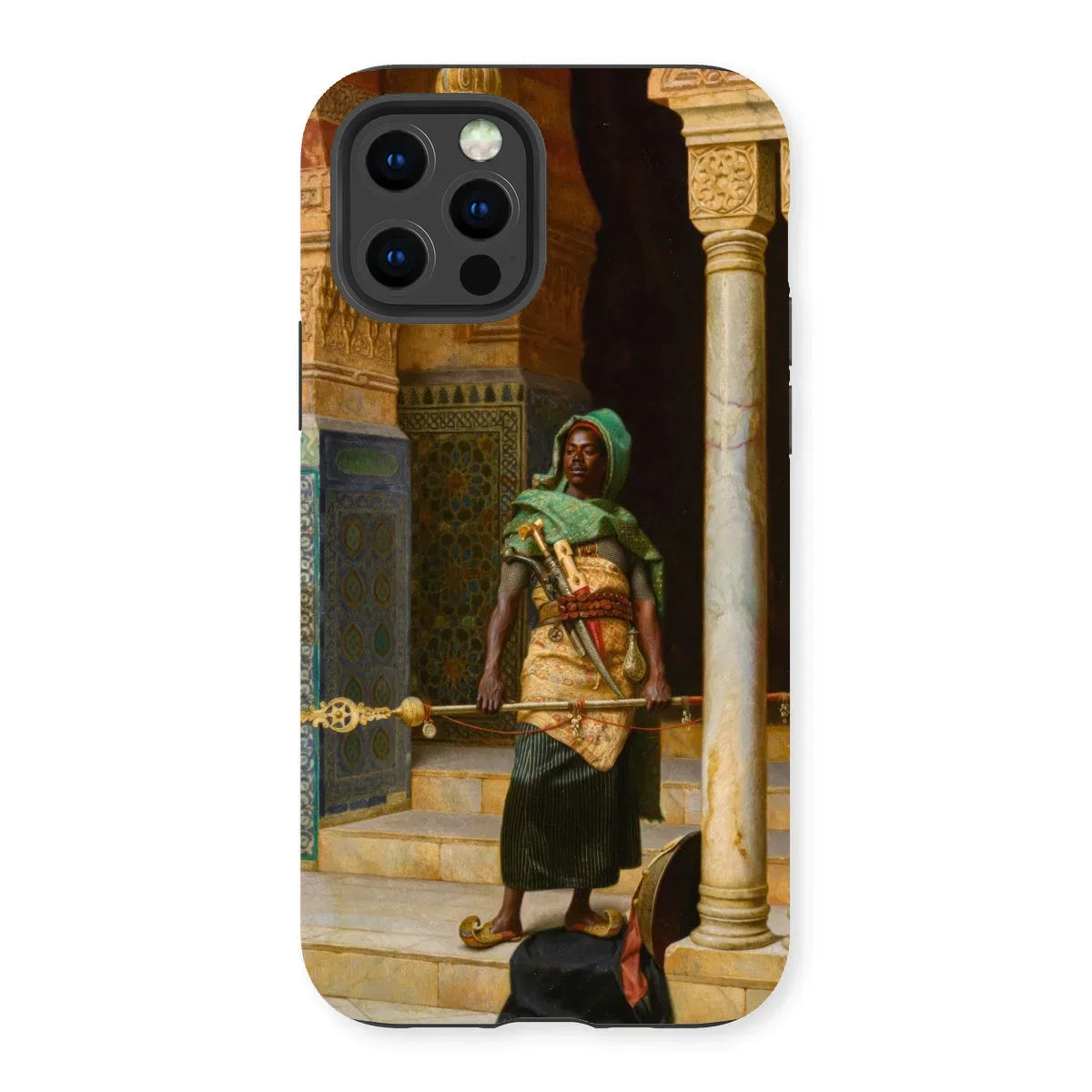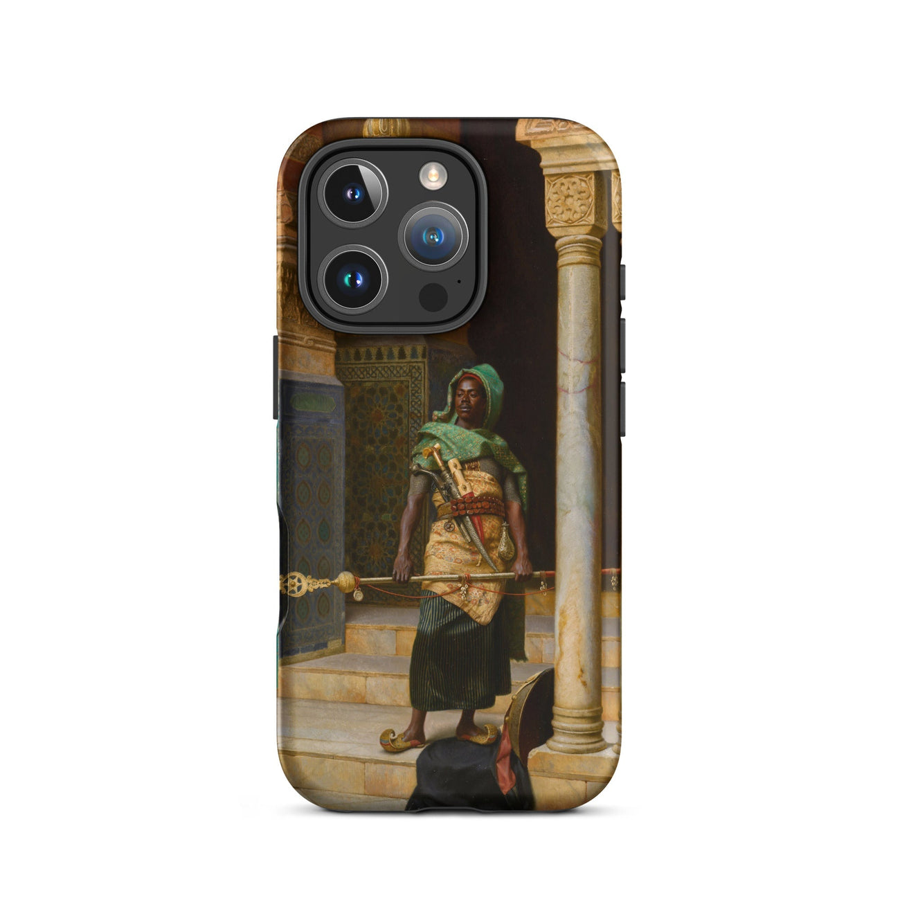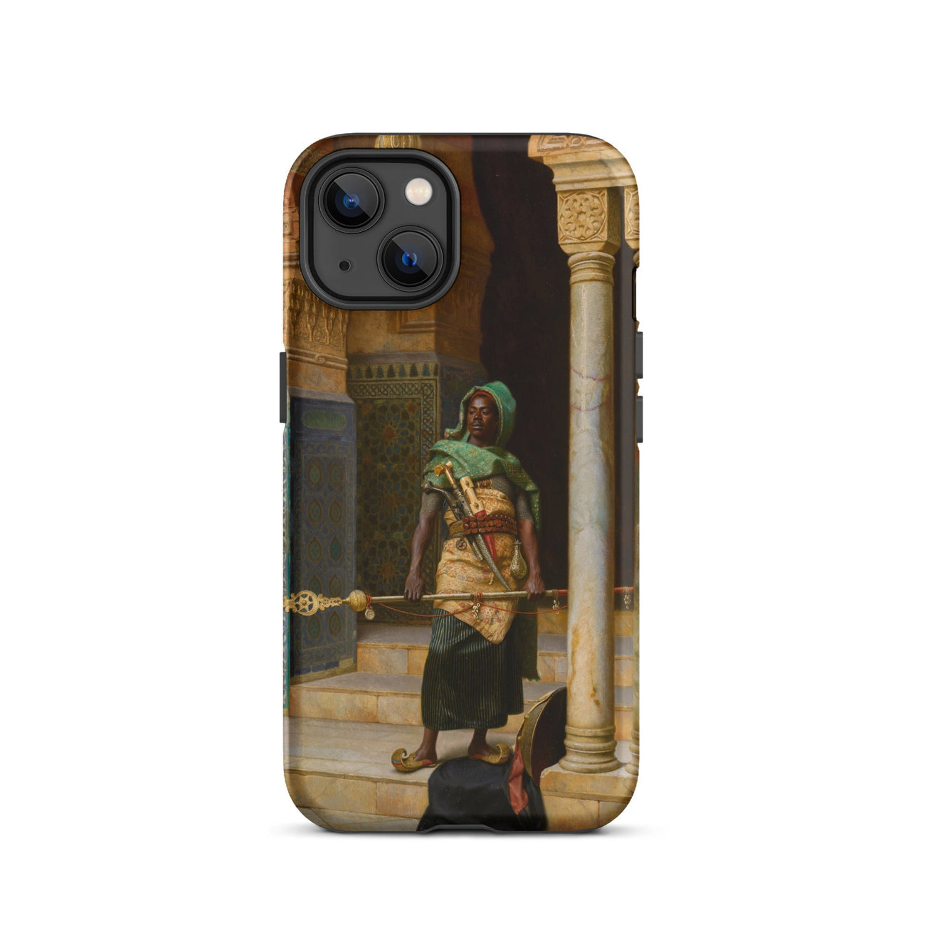 Plongez-vous dans le monde envoûtant de "The Nubian Guard" de Ludwig Deutsch. Cette captivante coque iPhone présente un chef-d'œuvre de l'art orientaliste, vous transportant dans un royaume de détails exquis et de symbolisme culturel riche. Le travail virtuose de Deutsch donne vie au guerrier nubien stoïque, sa peau sombre contrastant brillamment avec le décor orné.