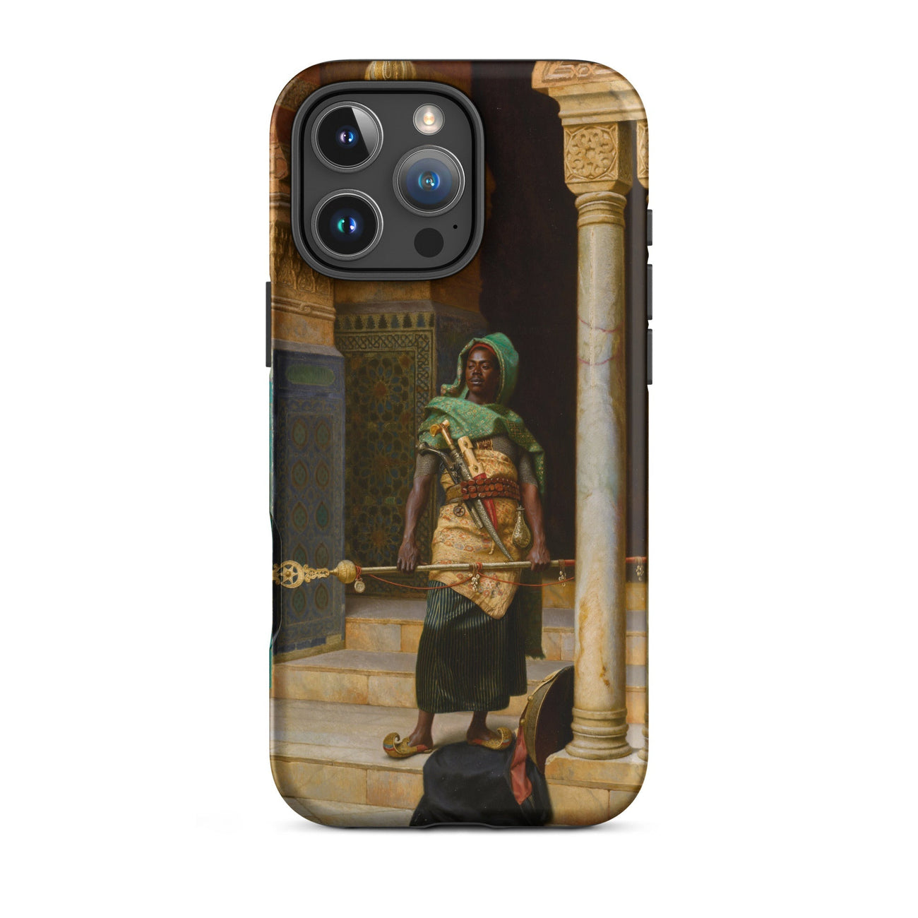 Protégez votre appareil tout en vous imprégnant de l'attrait de l'orientalisme du XIXe siècle. Cette coque n'est pas juste un accessoire ; c'est un déclencheur de conversation, une pièce d'art portable qui marie forme et fonction. Laissez "The Nubian Guard" veiller sur votre iPhone, sa présence stoïque rappelant des mystères inexprimés et une maîtrise artistique.