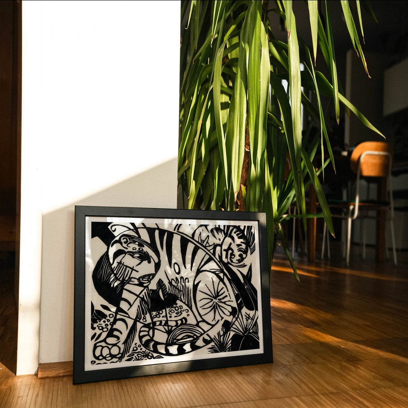 Plongez dans le royaume indompté de la vision expressionniste de Franz Marc avec cette électrisante impression d'art de tigre. Vous serez captivé par l'énergie primale qui pulse à travers chaque trait audacieux et noir. Le génie de Marc réside dans la transformation du félin féroce en un tourbillon de formes géométriques et de courbes sinueuses.