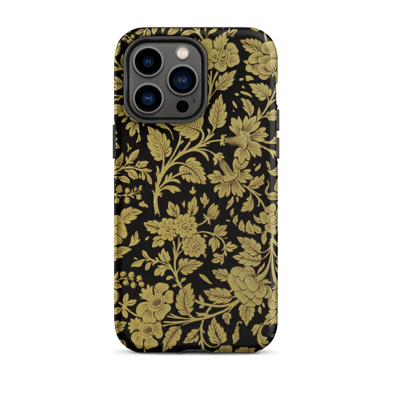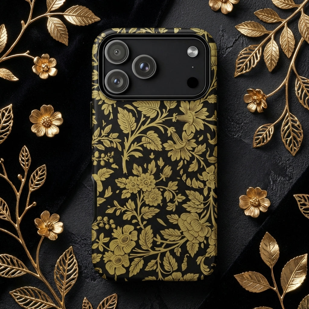 Plongez-vous dans le monde opulent du laque indien du XIXe siècle de Matthew Digby Wyatt, réimaginé aujourd'hui en une saisissante coque iPhone. Ce design exquis transforme votre appareil en une galerie d'art miniature, mettant en valeur une danse envoûtante de flore dorée sur un fond ébène.