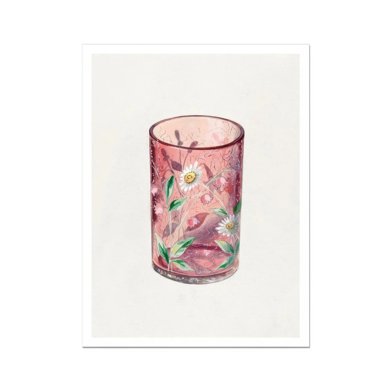 Vous serez transporté dans une époque d'élégance révolue avec ce verre peint à la main fascinant imprimé art. Les coups de pinceau magistraux de Ralph Atkinson respirent la vie dans un gobelet cylindrique, sa surface teintée de rose une toile pour la fantaisie botanique. Daisies délicates, leurs pétales ivoire et se concentrent dorés, la danse au milieu de l'émeraude part sur une toile de fond.
