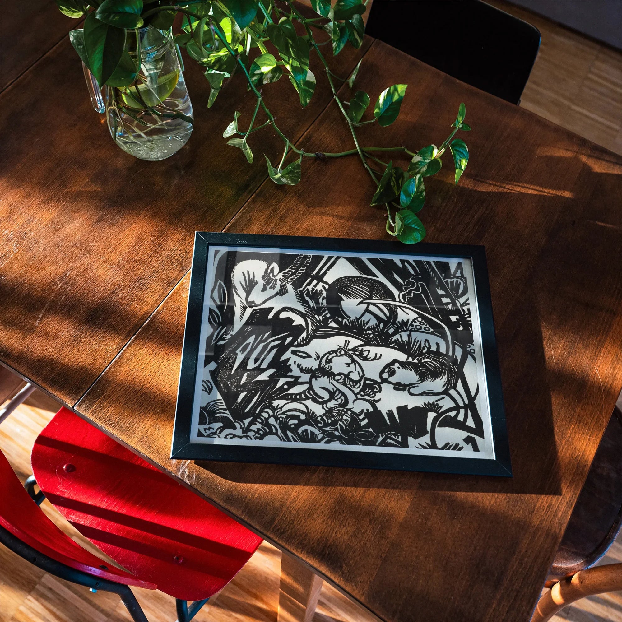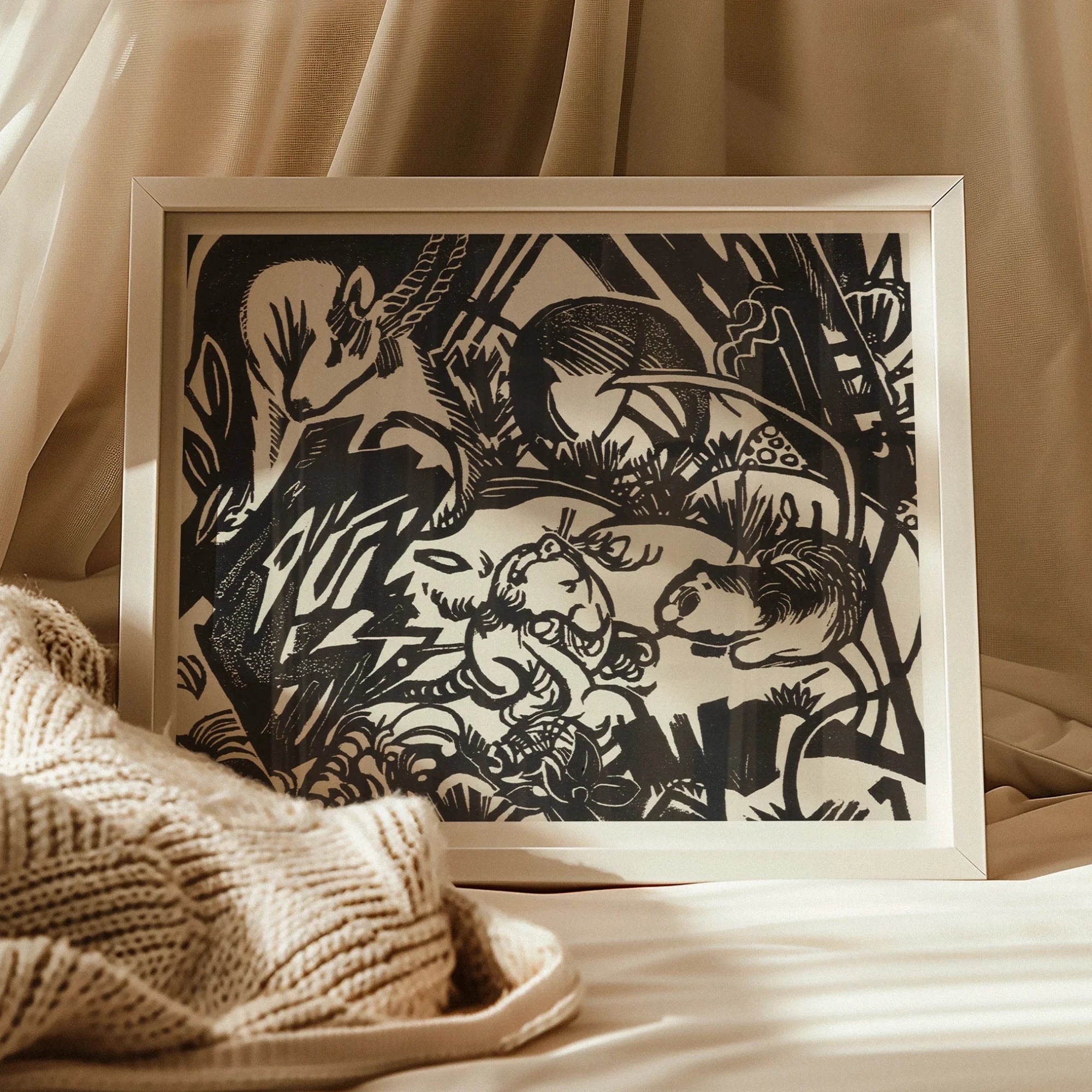 Tragicamente interrotto dalla prima guerra mondiale, l'eredità di Marc vive in questa stampa. È una finestra in un mondo in cui la natura regna suprema, invitandoti a perderti nei suoi ritmi primordiali e nel fascino senza tempo.