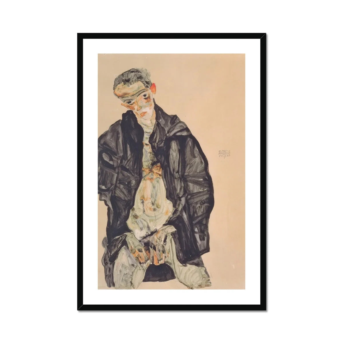 La posizione della mano di Schiele parla chiaramente di urgenza erotica, mentre la sua testa inclinata e gli occhi vuoti catturano esaurimento, alienazione e sfida alla tradizione del ritratto accademico. La linea espressionista diventa contorno e ferita simultaneamente, rimodellando il corpo maschile in un emblema dell'ansia moderna.