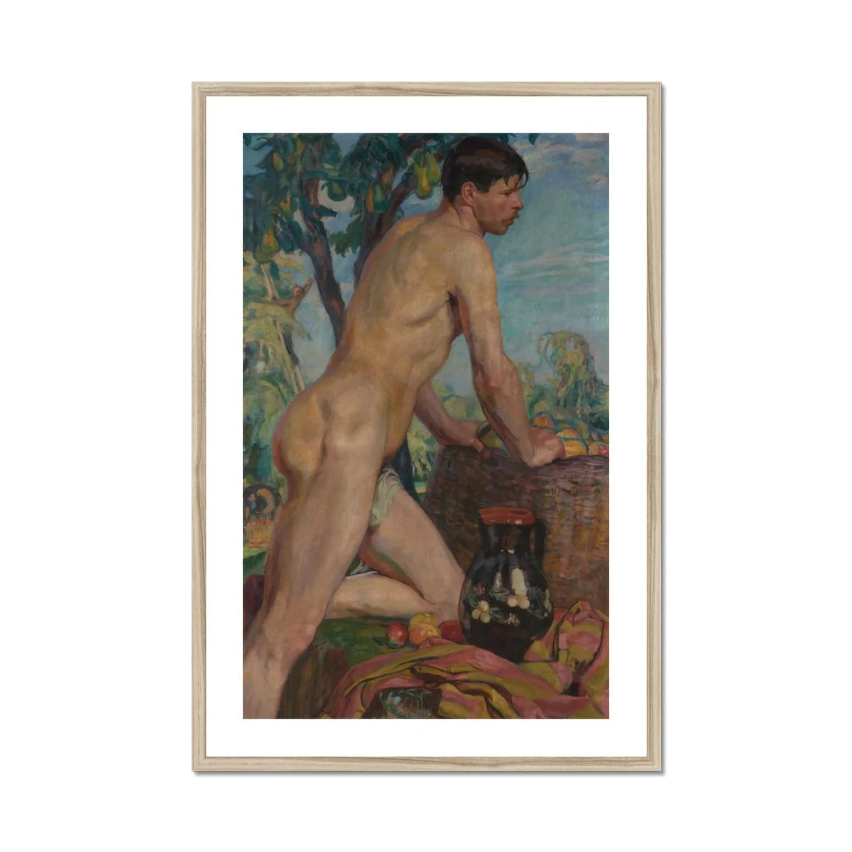 Nudo maschile contro lo sfondo di un frutteto - Stampa d'arte di Weiss Wojciech
