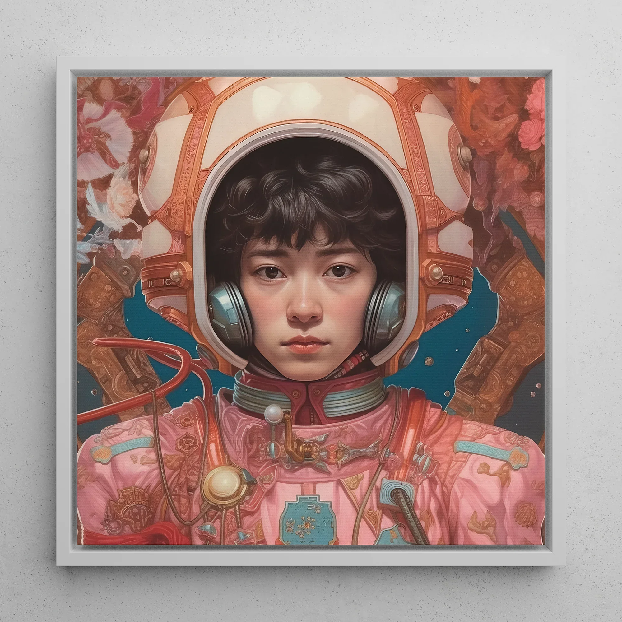 Kaito è più di un astronauta; è un viaggiatore di identità e storia, incarnando l'intersezione della resilienza queer, dell'innovazione spaziale giapponese e del desiderio umano sconfinato di scoperta. Questa tela incorniciata è un potente tributo agli astronauti queer, al design influenzato dai mecha e allo spirito di coloro che sfidano la gravità e le convenzioni.