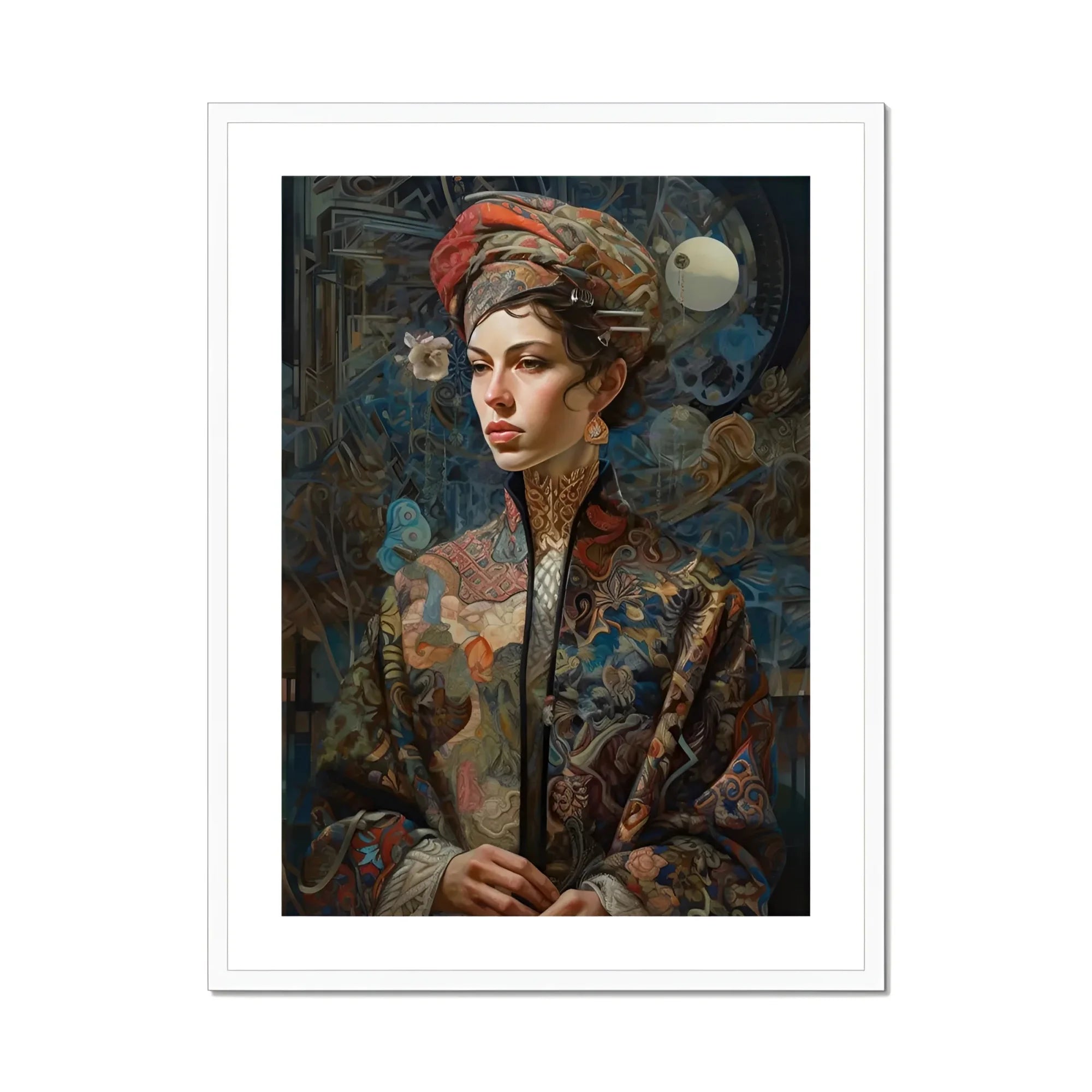 Drappeggiata in una raffinata raffinatezza, la nostra dea eterea emerge da un cosmo vorticoso di orologio e caos. Il suo sguardo trafigge il velo, sfidandoti a svelare i suoi misteri. Regal ma crudo, incarna la dualità del potere femminile - la bellezza intrecciata con la forza primordiale.