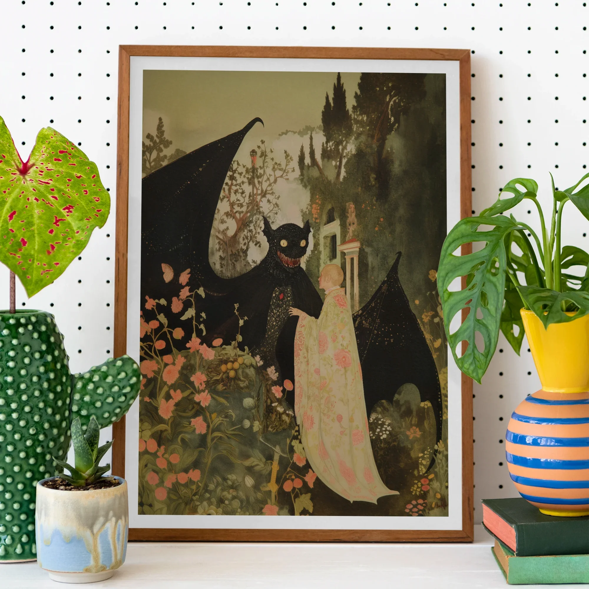 È un ritorno a casa: una riunione piena del tipo di calore e cura che trascende le parole. E questa casa dolce a casa stampa d'arte Cattura quel momento di ritorno: dove coesistono luce e oscura, dove l'amore prospera nei luoghi che meno ci aspettiamo. Sfidando tutto ciò che pensi di sapere sulla fede, le creature della notte e dove l'amore può mettere radici e fiorire.