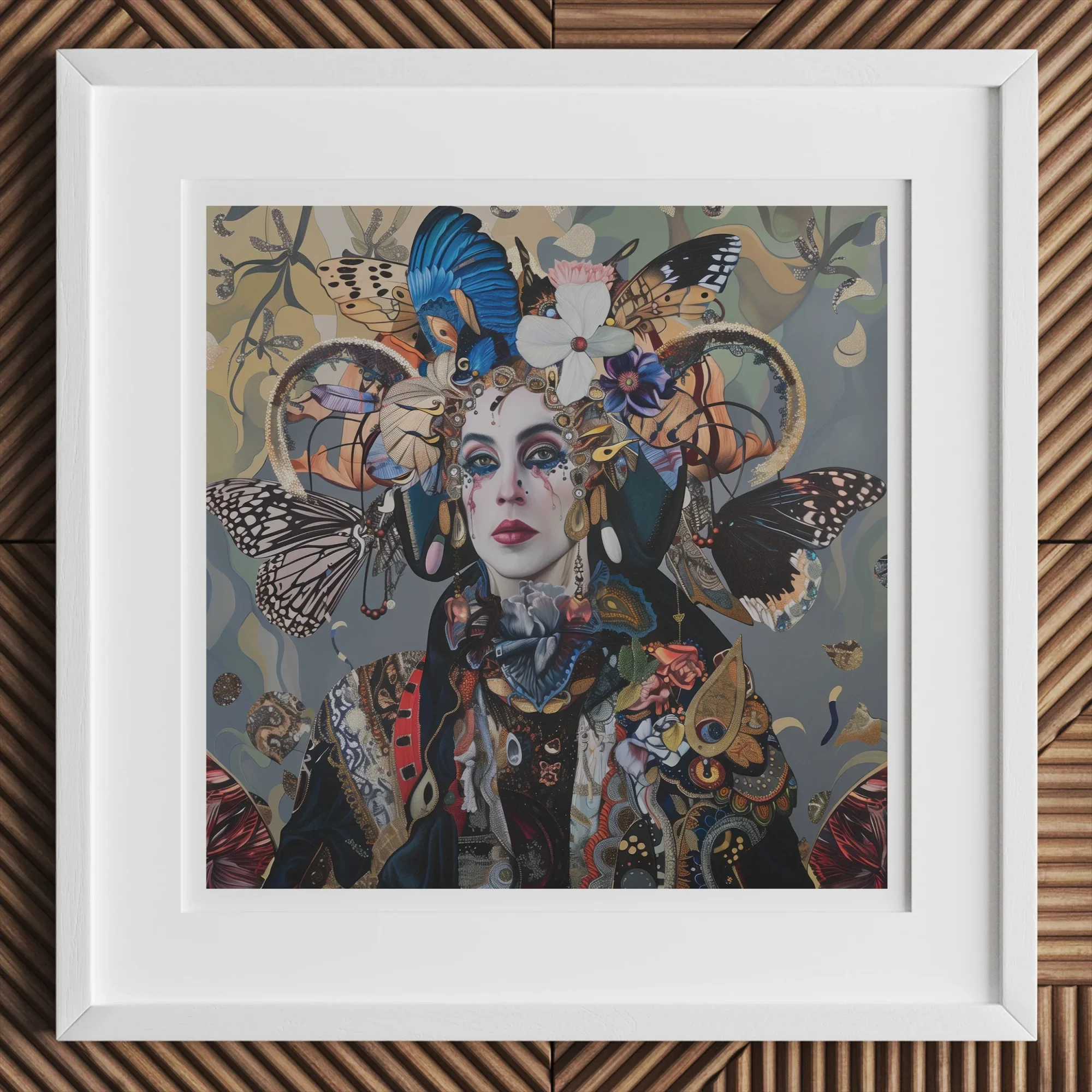 Il tocco surrealista gira il suo costume ornato in una festa di strati: florali, ali, trame intrecciate in un caos delicato e onirico. Lo vedi, proprio lì nel suo sguardo: l'invito a saltare in un mondo UNETERED, dove l'avventura chiama e ragioni svaniscono.