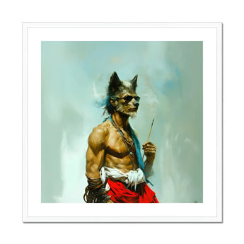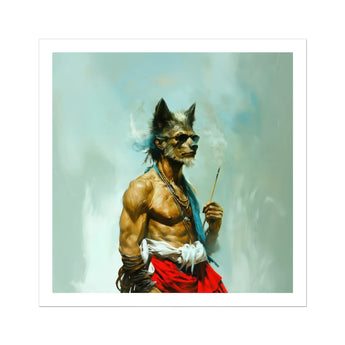 Bhediya è un anziano spettrale legato a fumo e storie. Una figura di grazia senza tempo, questa gay Wolf Sadhu è scolpito con tendine del tendine e scarlatto. Furia incisa con età e saggezza. Catturare la luce mentre scruta nei mondi oltre. Occhi nascosti dietro le sfumature che non riflettono nulla ancora vedono tutto.