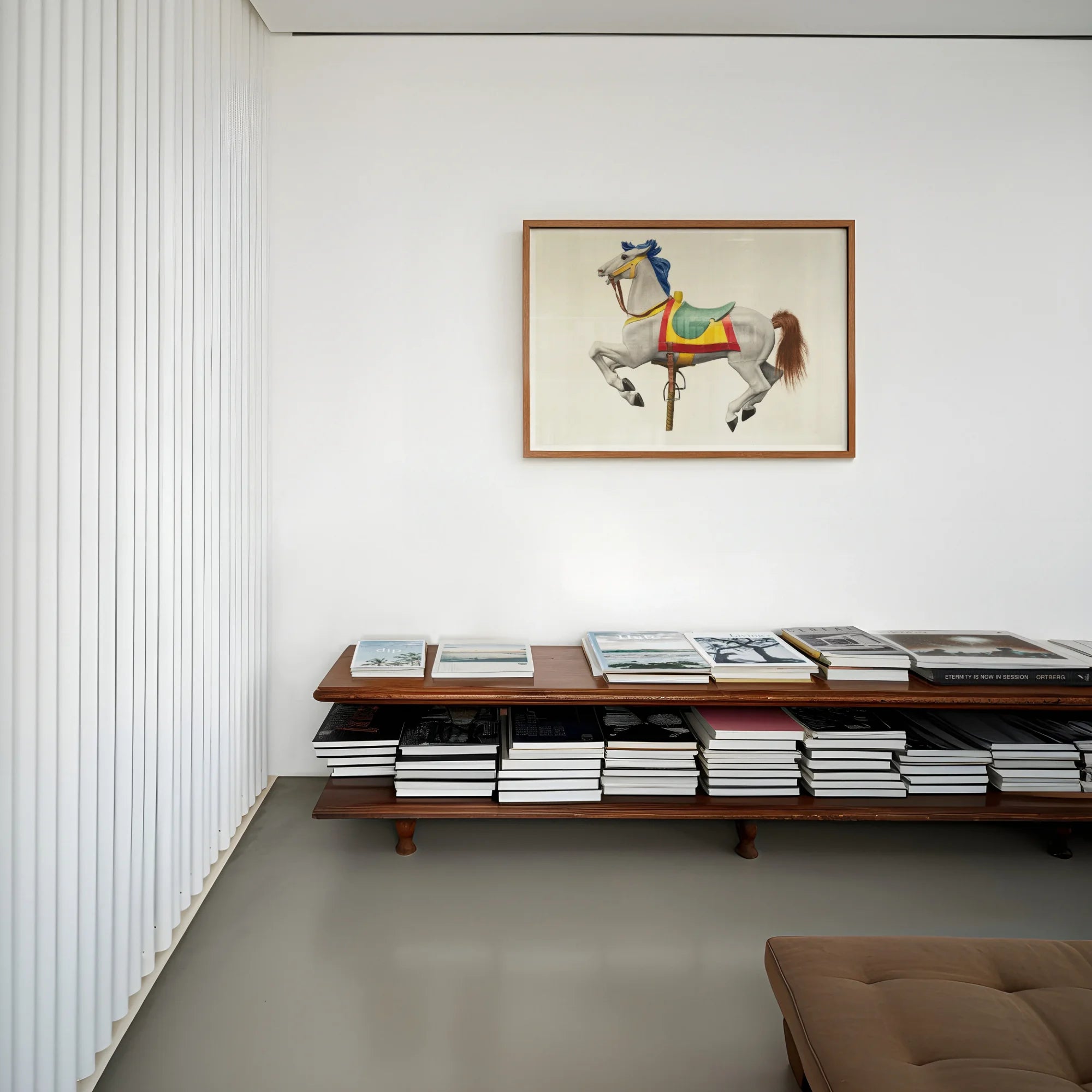 Questa vivace stampa ad acquerello cattura l'essenza dell'Americana attraverso un cavallo da giostra magistralmente reso, evocando l'età d'oro dei luna park e l'intramontabile fascino dell'arte popolare.