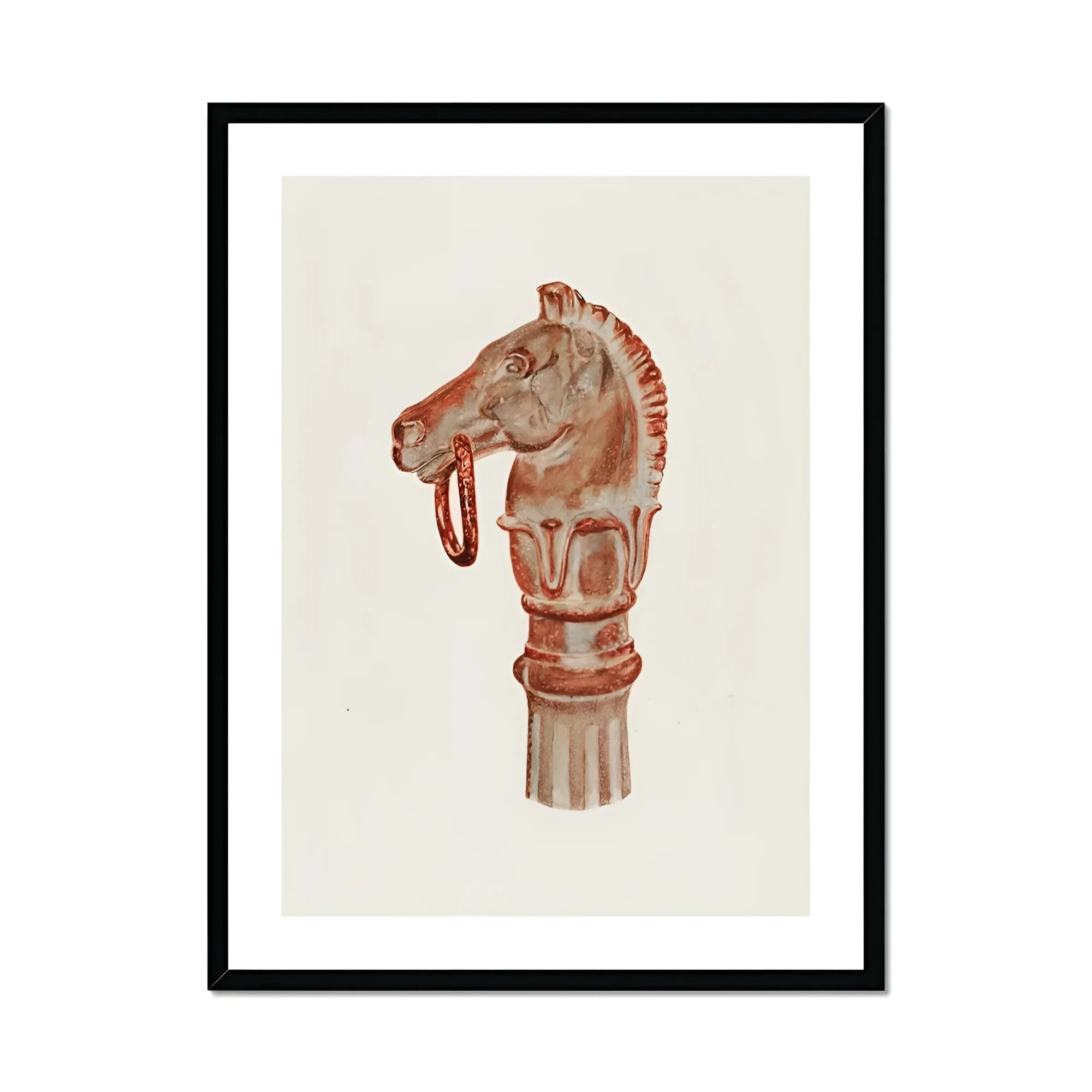 Galoppare nel fascino vintage con questa stampa equestre dai toni seppia. La magistrale acquerello di Gerard Barnett cattura il volto di un nobile destriero in cima a un palo di attacco, evocando gli anni '30 Americana. L'occhio di allerta del cavallo e le narici svasate danno la vita a colpi color ruggine, mentre la colonna scanalata del palo ancore la composizione.