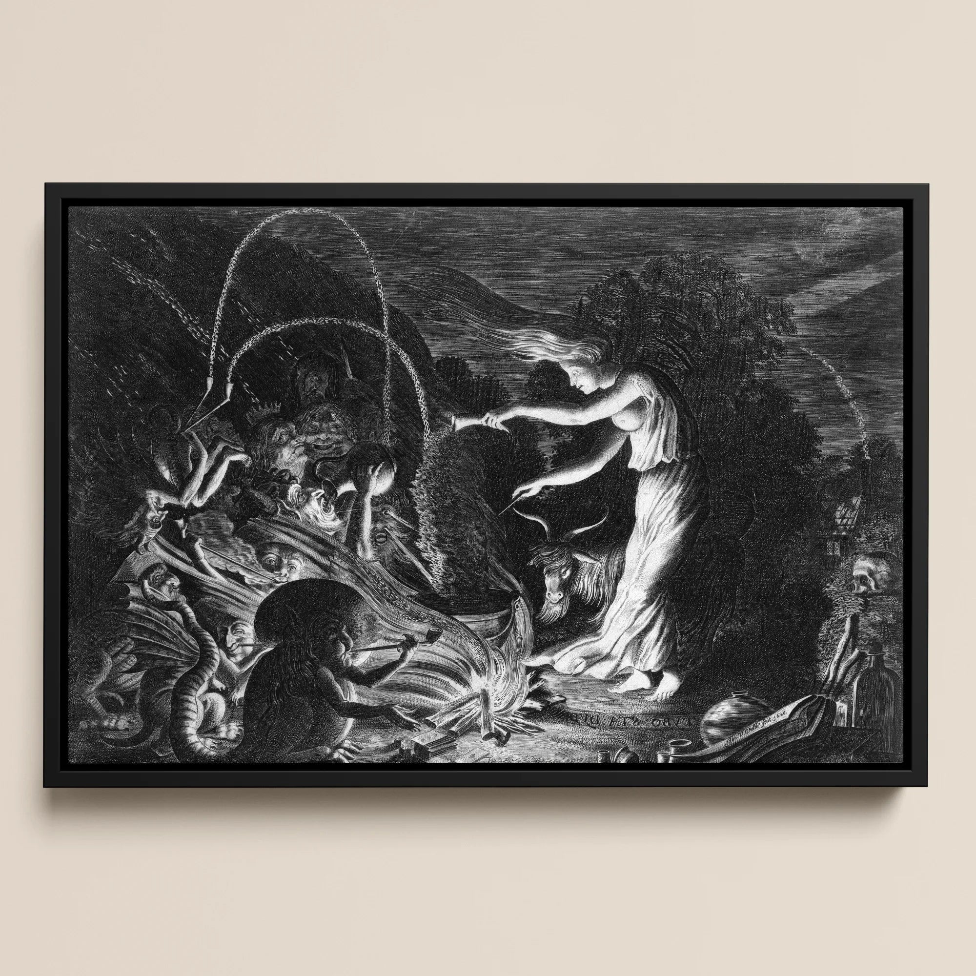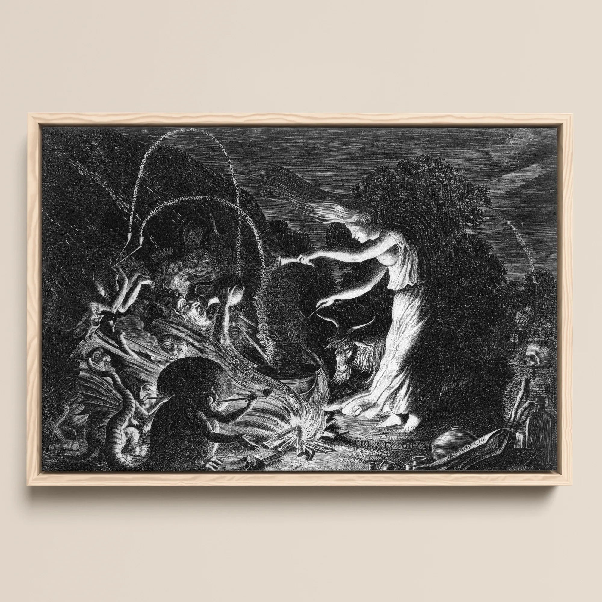 Una strega al suo calderone circondata da mostri - Jan van de Velde II Tela incorniciata