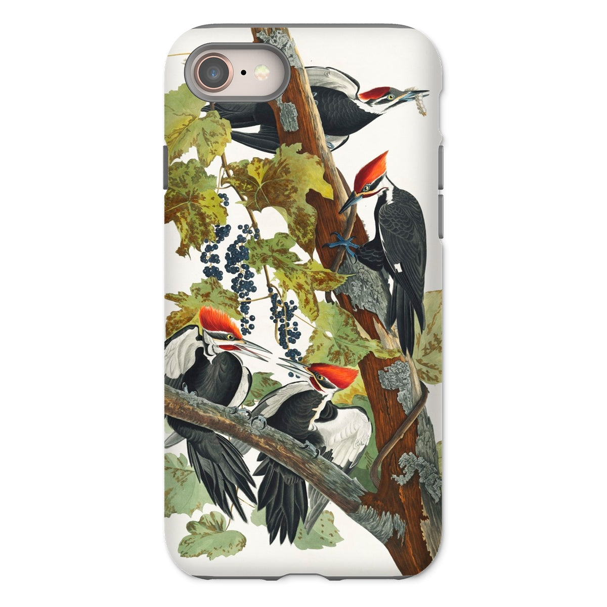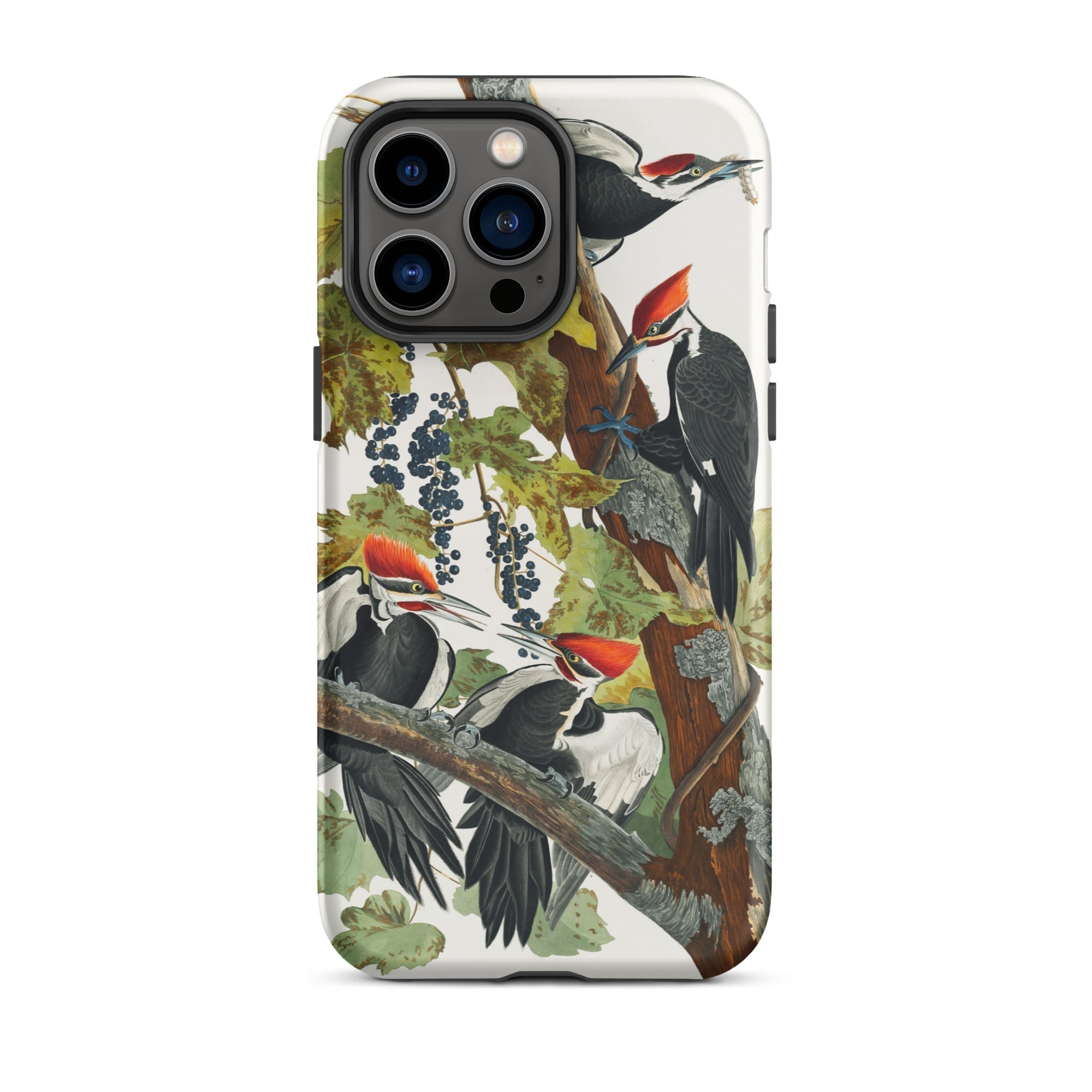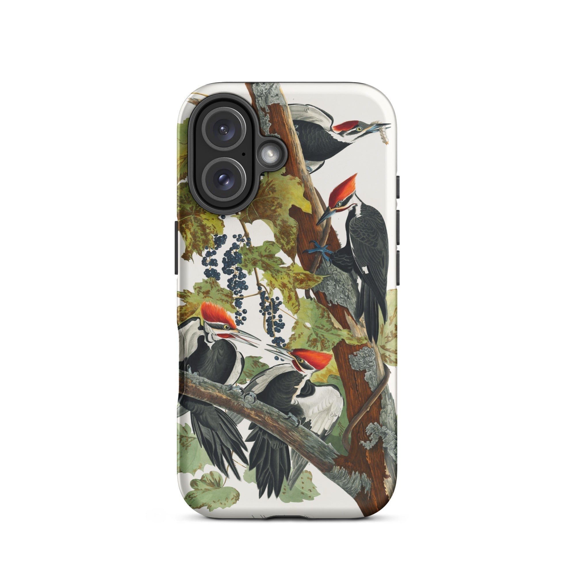 Questa squisita custodia per iPhone di John James Audubon trasforma il tuo dispositivo in una tela vivente della grandiosità della natura. Caratterizzata da un'illustrazione vintage di Audubon, mette in mostra il maestoso Picchio Pileato in dettagli sorprendenti: creste scarlatte in fiamme, ali pronte a metà movimento e becchi che battono contro la corteccia antica. Il loro mondo è fatto di ricche trame: rami nodosi, fogliame rigoglioso e grappoli di bacche blu intenso, evocando la bellezza selvaggia della natura incontaminata del Nord America.