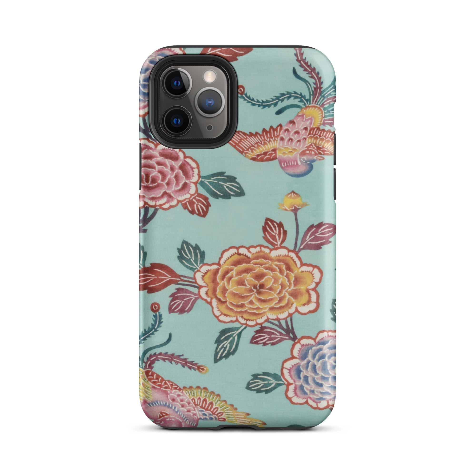 Custodia per iPhone con pannello Bingata di peonie e pavoni