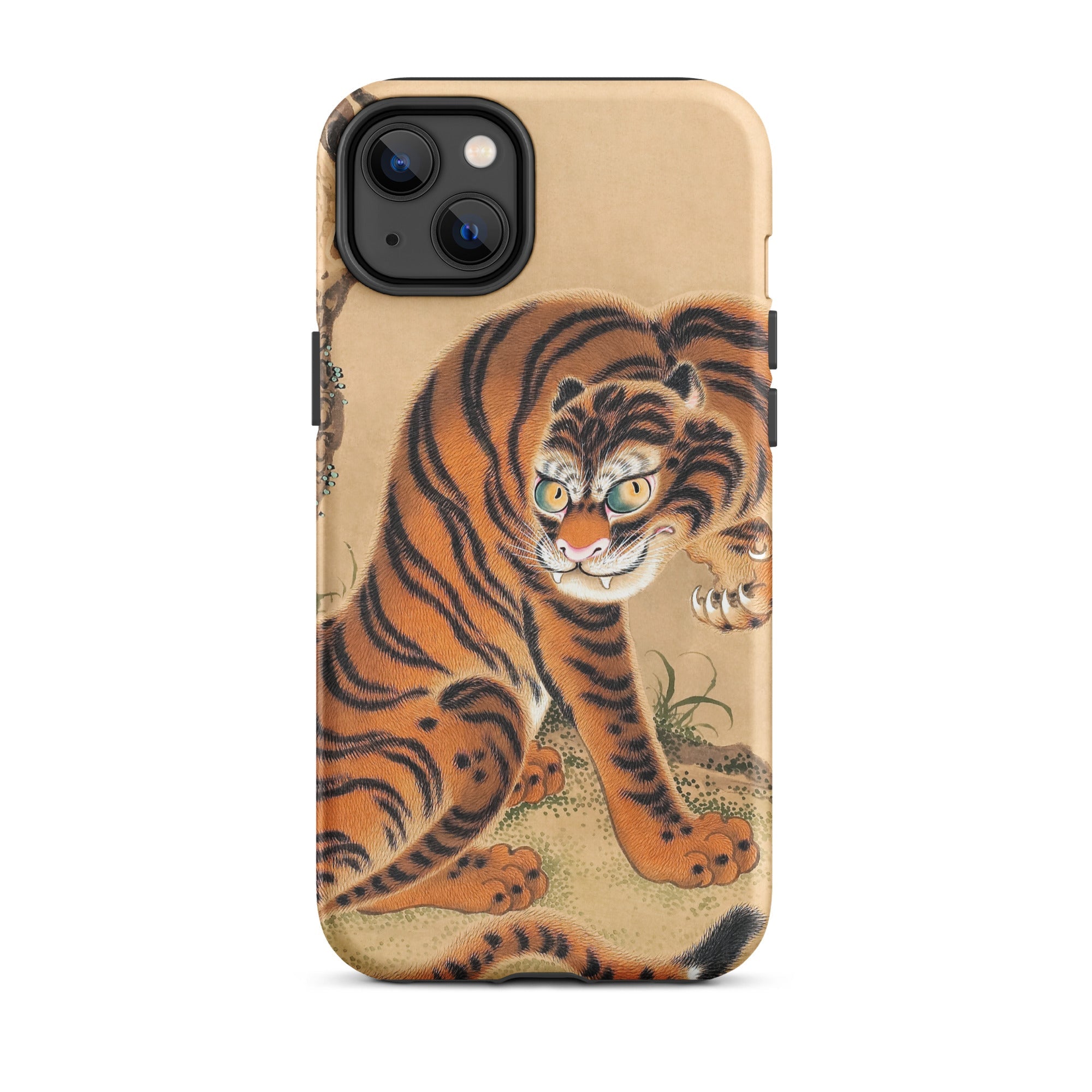 Feroce eppure fluido, la custodia iPhone con il Tigre che si pulisce la zampa ruggisce con l'intensità del periodo Edo. Presentando la maestria pittorica di Matsui Keichū, questa custodia cattura lo spirito della tigre: la sua forma muscolosa che si contorce in un momento di silenziosa dominanza, i suoi occhi dorati vivi di energia indomita. Lo sfondo morbido, color pergamena, riecheggia le estetiche tradizionali del nihonga, radicando la bestia selvaggia in un regno di arte senza tempo. Ogni tratto, ogni dettaglio, parla di potere trattenuto, un predatore a riposo ma sempre vigile.