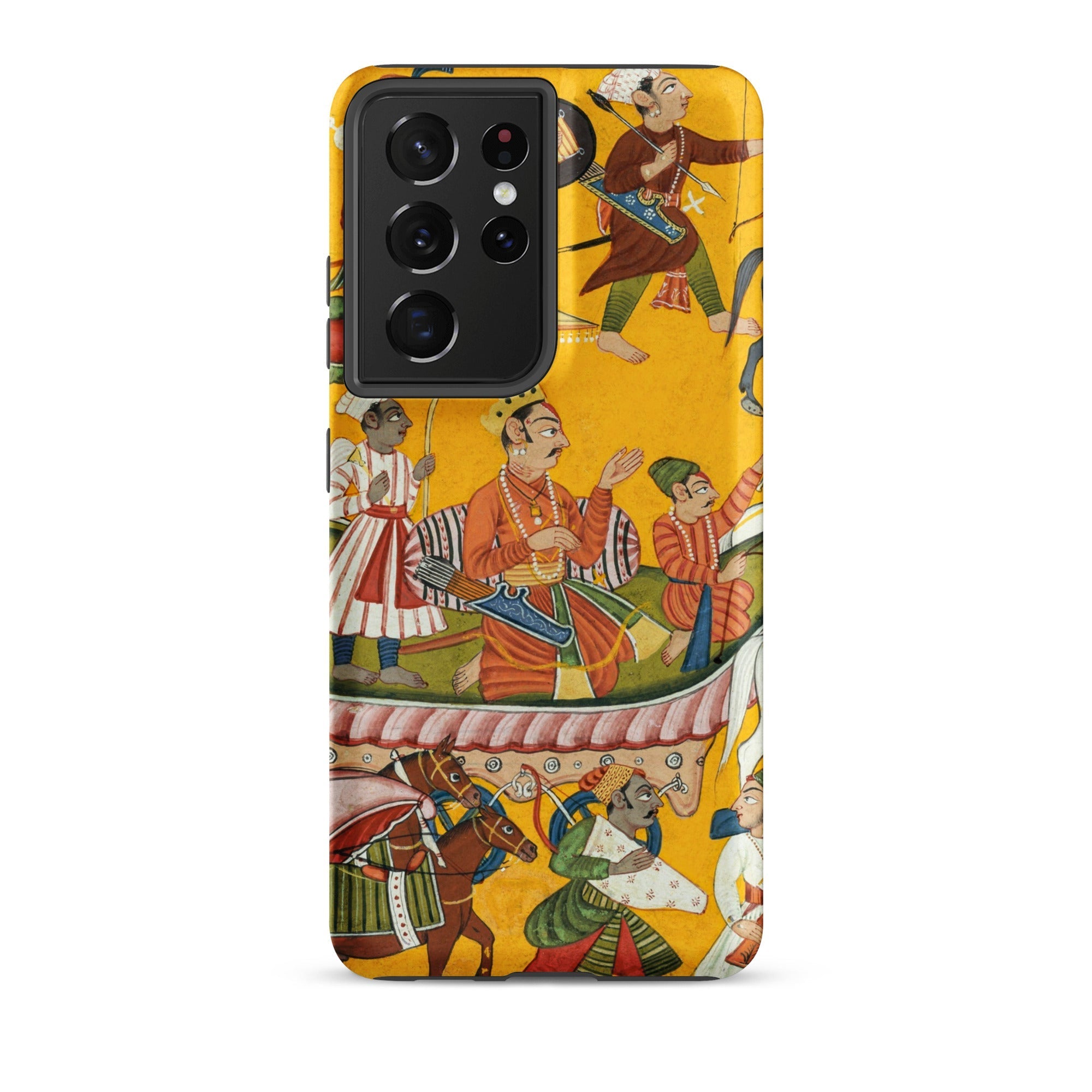 Questa custodia Samsung preserva i rossi saturi, gli smeraldi e gli ocra della pittura in miniatura indiana del XVIII secolo, rendendo ogni linea delicata, inclinazione del viso e piega del tessuto in dettagli vividi. Una galleria portatile di narrazione epica, invita il tuo tocco a portare la sontuosità reale di Ayodhya attraverso la pressione della vita quotidiana.