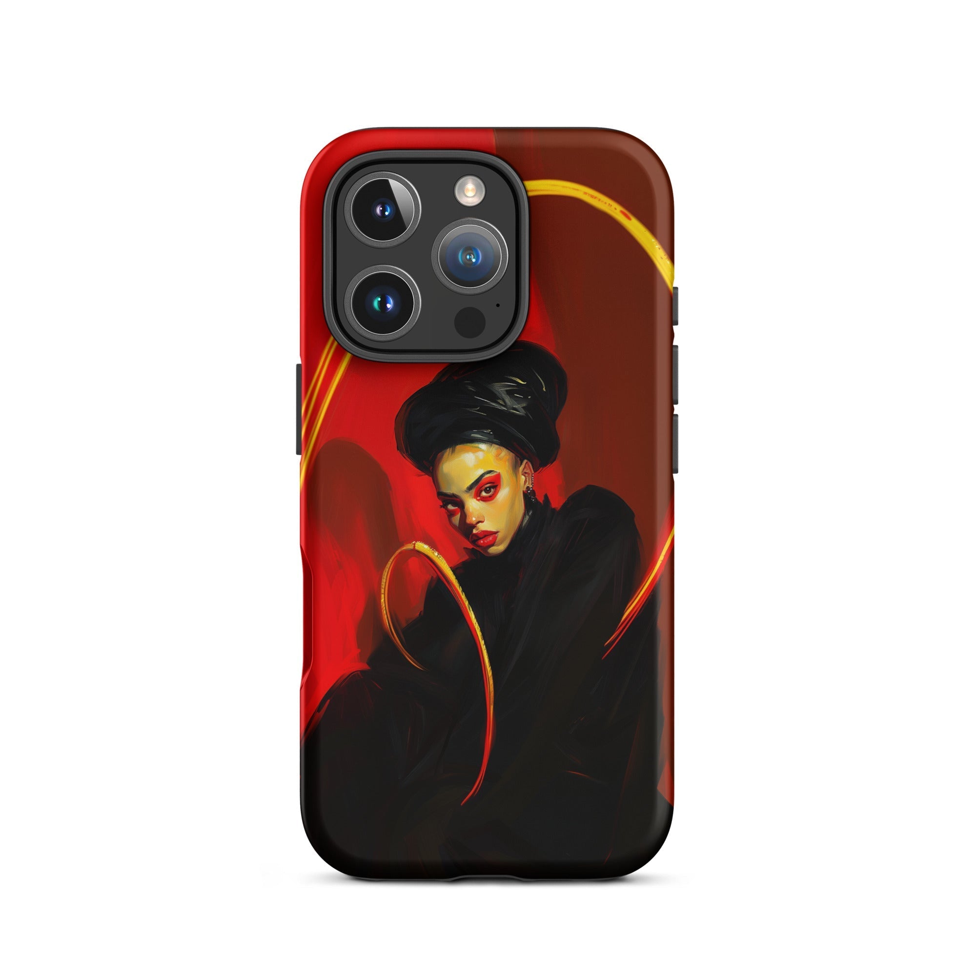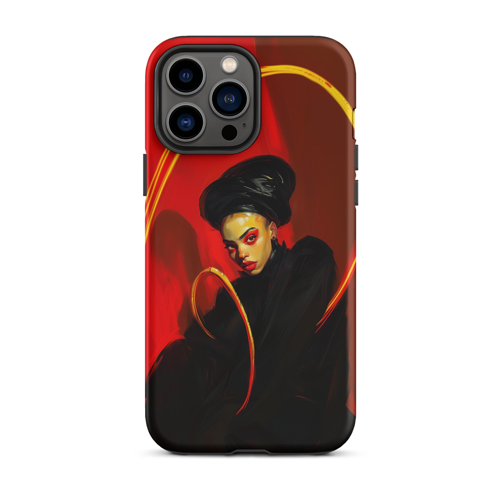 Avvolto in fili cosmici di oro e fiamma, Serafina comanda gli stessi elementi intorno a questo su questo iPhone caso. Mentre lo tieni, puoi sentire l'energia saffica grezza e selvaggia di questo celeste lesbica strega. Correndo attraverso gli audaci contrasti di neri ardente rosso e oscuro come il sangue che pompava attraverso le vene del terrore e del desiderio.
