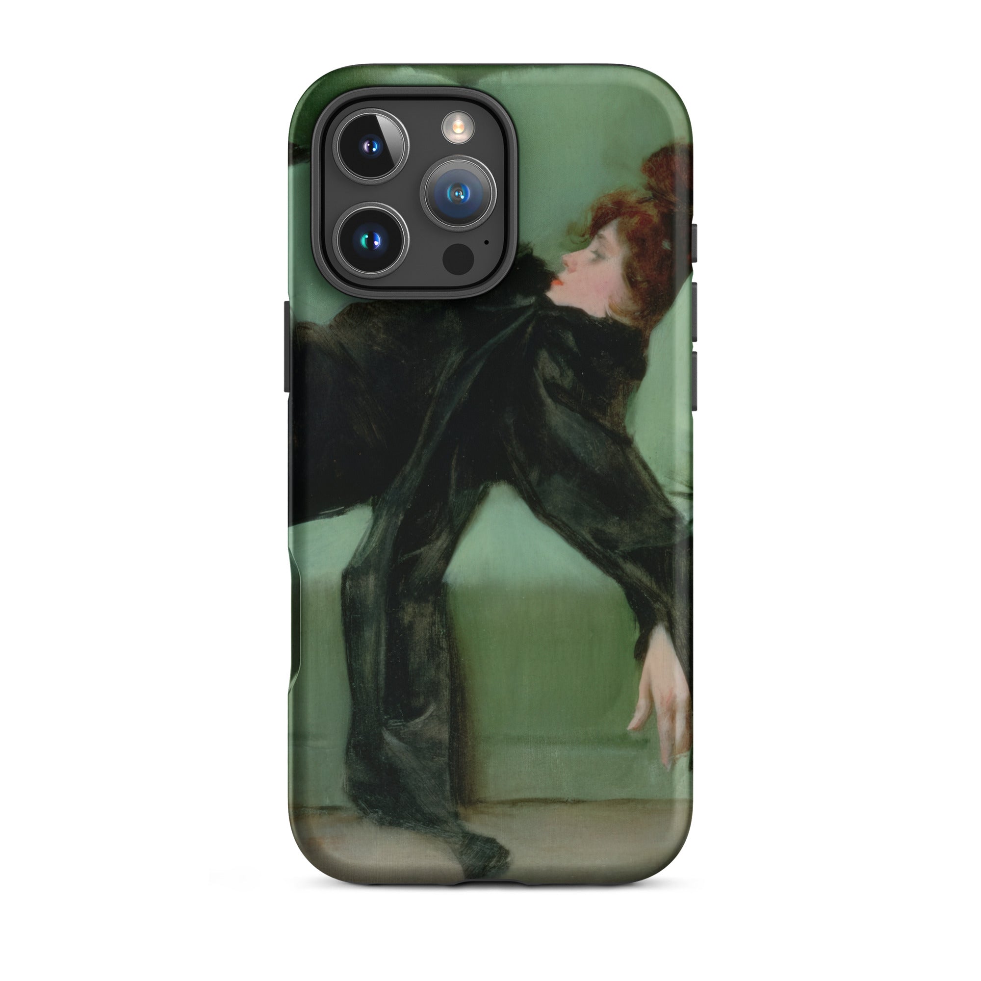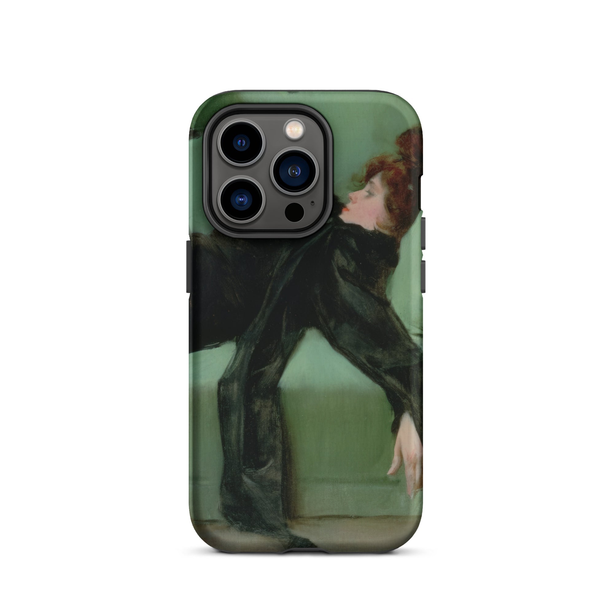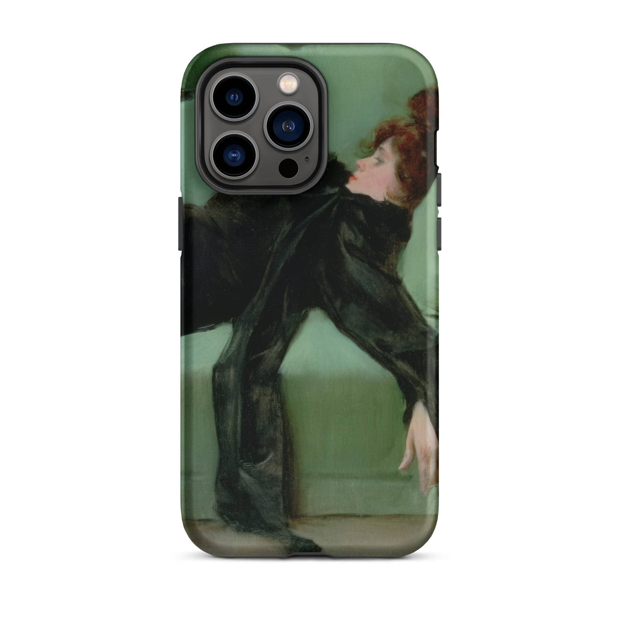 Si stende attraverso il vuoto smeraldo come un sospiro febbrile—le sue membra esiliate dall'intenzione, il suo sguardo rilassato con esaurimento vellutato. After the Ball di Ramon Casas non rappresenta il dopo; lo sospende. Questa custodia per iPhone di Ramon Casas rende la divina fatica del Modernismo in forma tattile, un sussurro dei saloni crepuscolari di Barcellona, dove i pensieri di oppio si avvolgevano sotto le sete e gli anarchici discutevano sotto la luce a gas.