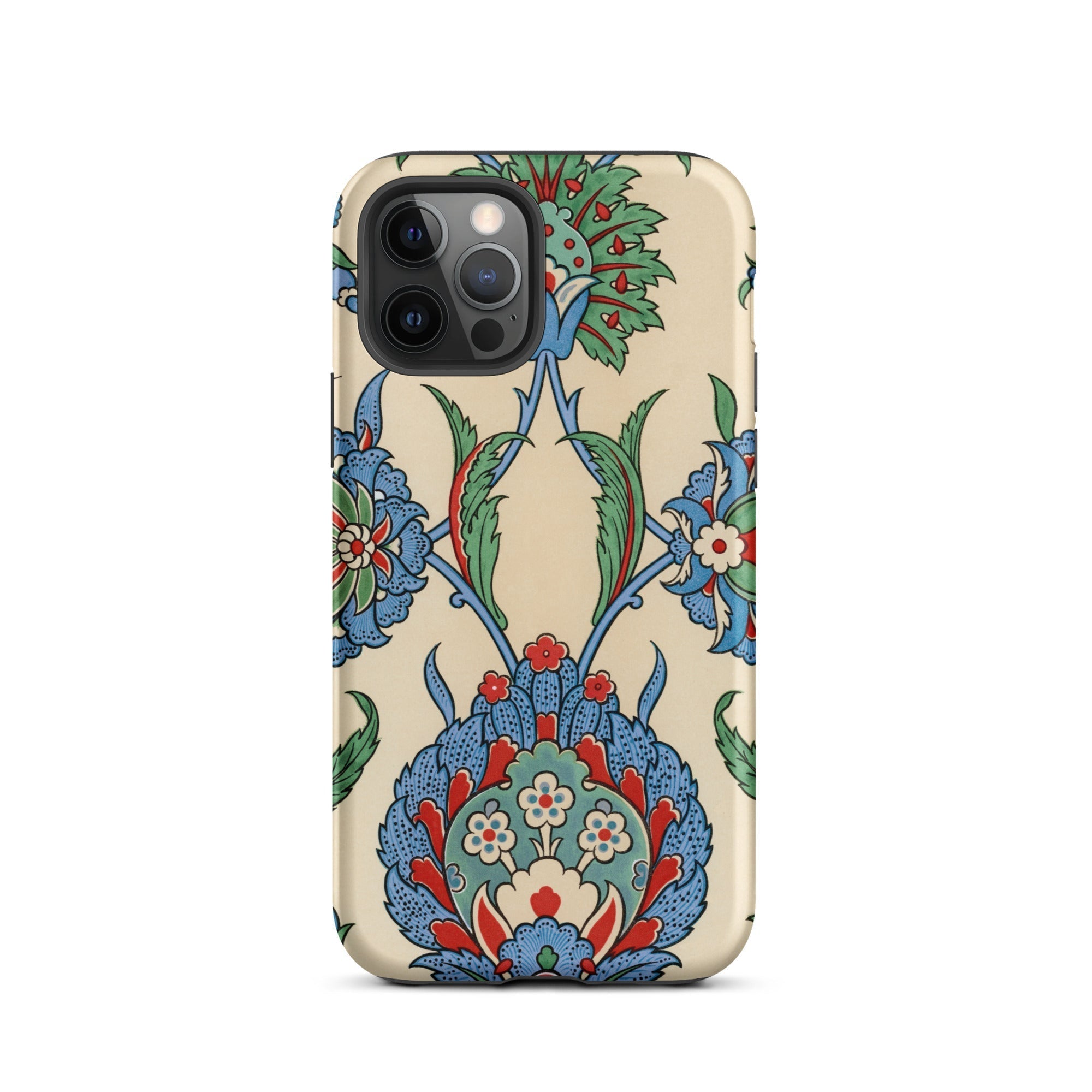 Eleva il tuo iPhone con questa custodia che presenta La Decoration Arabe 51 di Émile Prisse d'Avennes, una sinfonia botanica dell'arte islamica. Non proteggerai solo il tuo dispositivo; avrai tra le mani un frammento della passione orientalista del XIX secolo, catturato meticolosamente da un esploratore visionario.