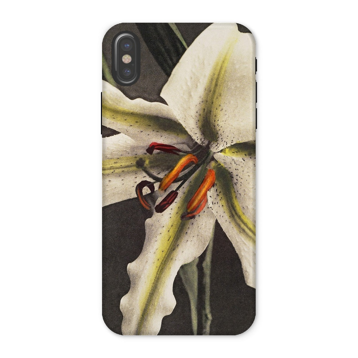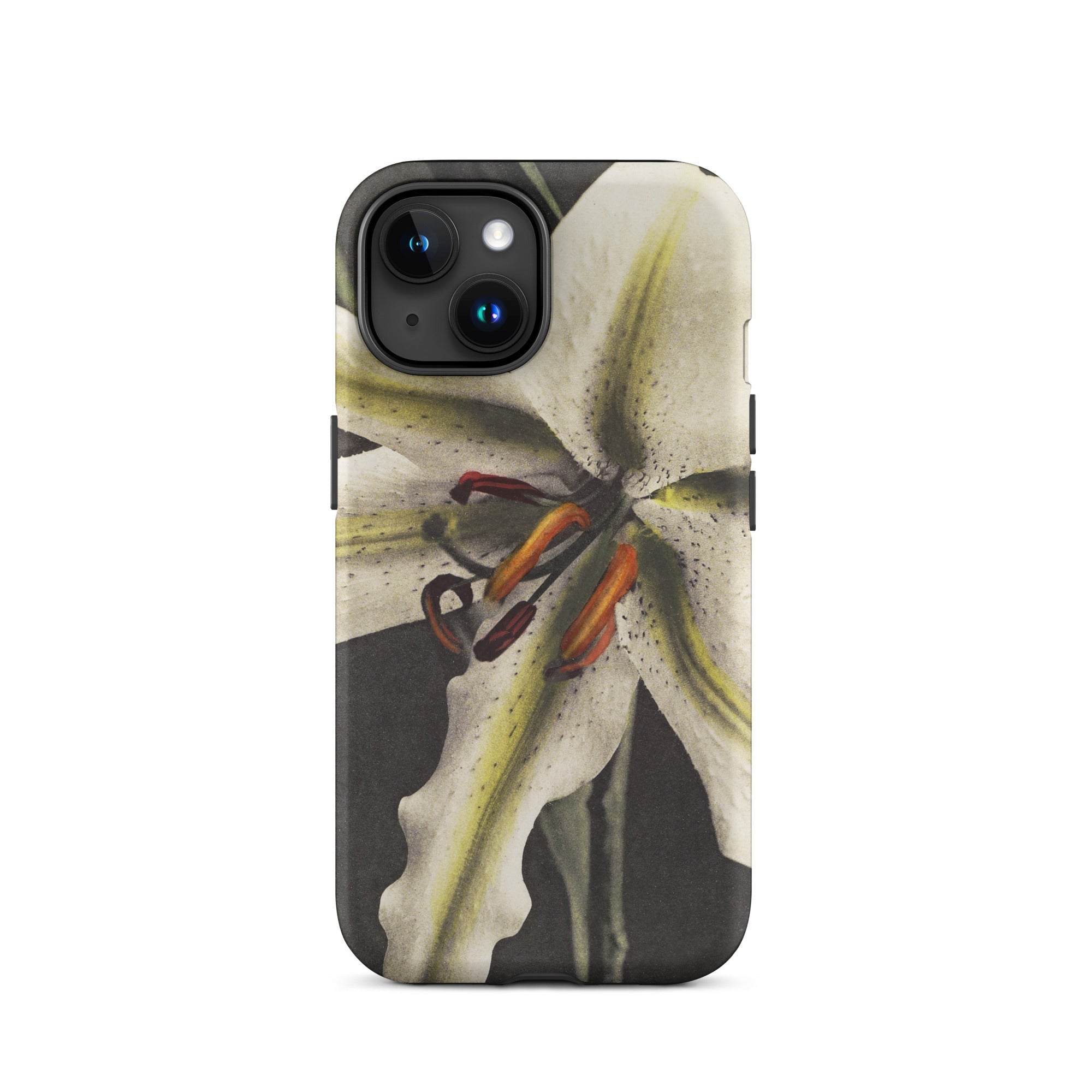Un giglio deciso si apre contro ombre d'ossidiana su questa custodia per iPhone, un kimono digitale tessuto dal collotipo dell'era Meiji di Ogawa Kazumasa. Questo non è solo un'armatura per dispositivi; è un portale per la metamorfosi fotografica del Giappone.