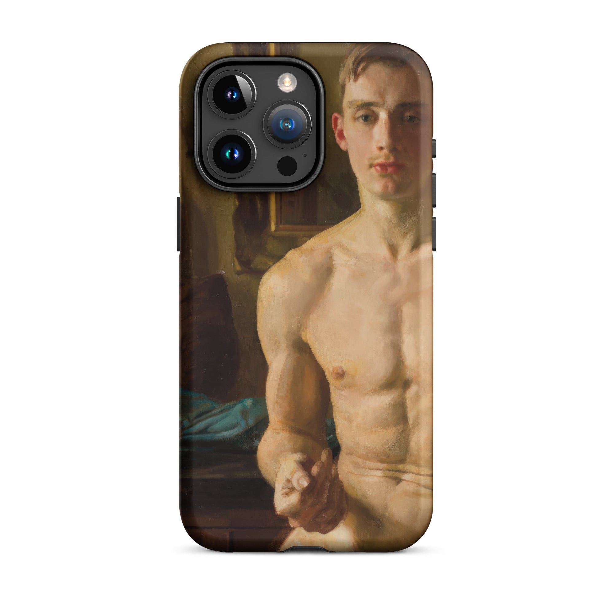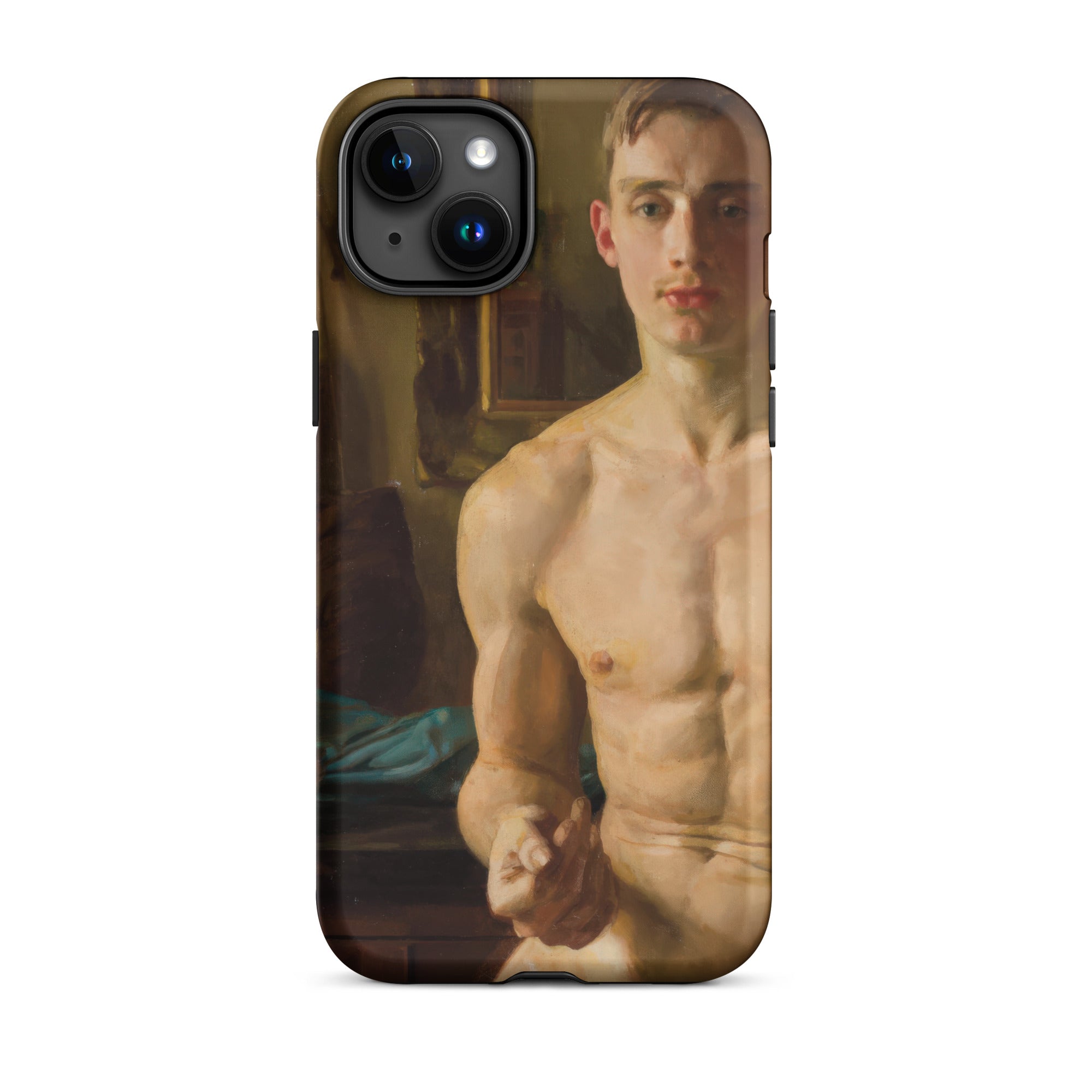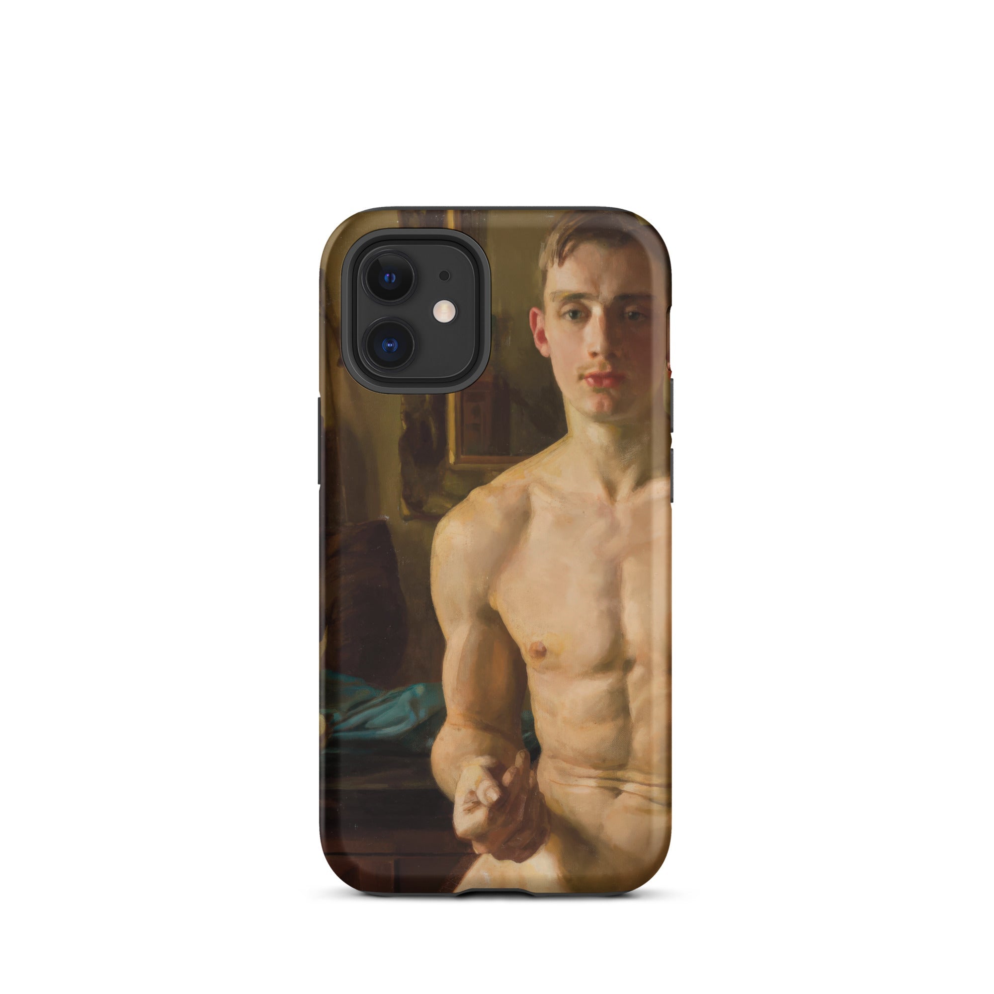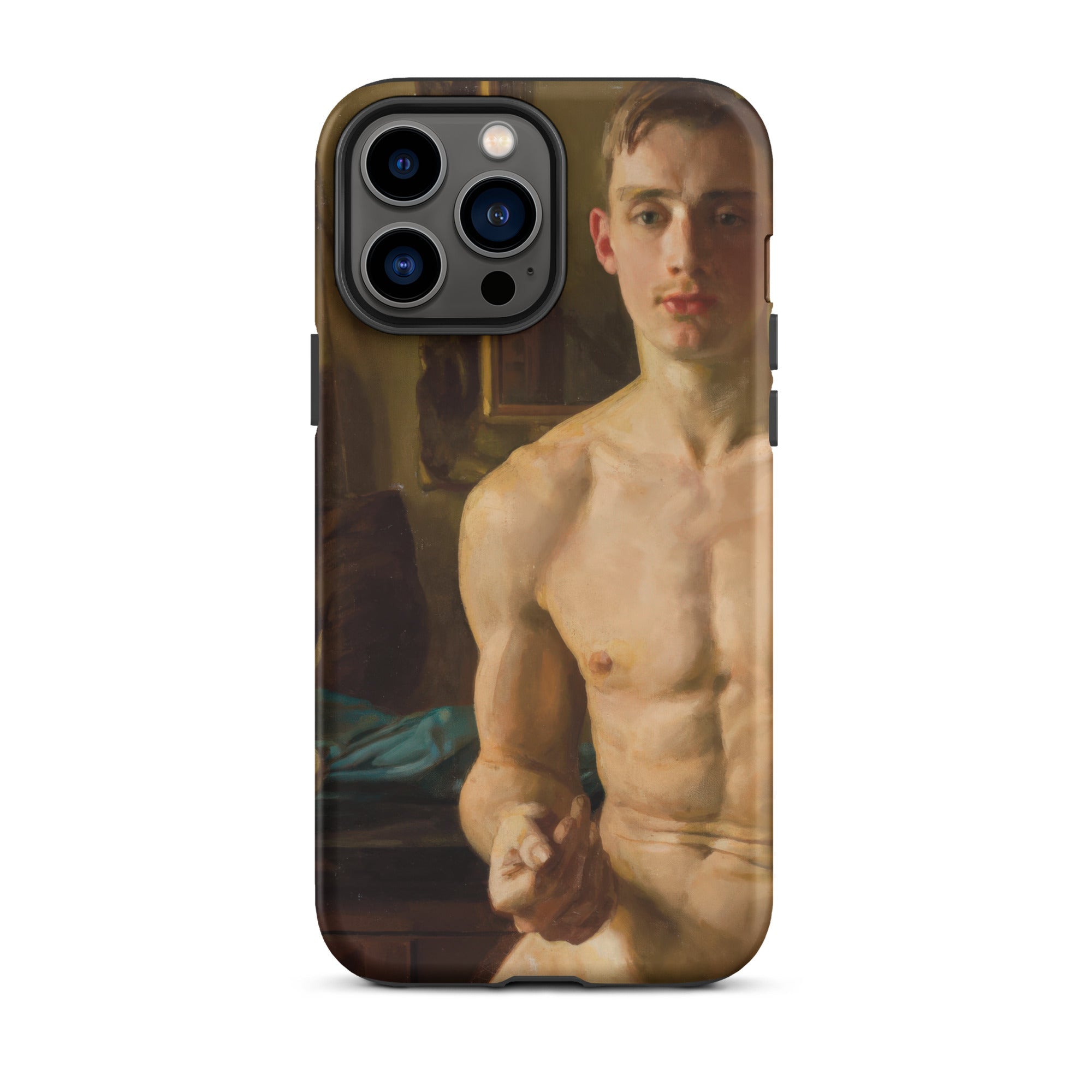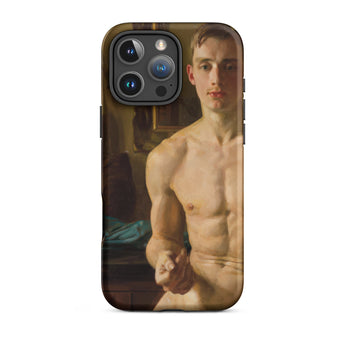 Un corpo scolpito dalla luce, in bilico tra movimento e immobilità. Questa custodia per iPhone cattura Il Pugile di Konstantin Andreevich Somov, uno studio squisito nel realismo neoclassico, dove ogni pennellata venera la forma maschile nella sua espressione più poetica. I muscoli si increspano sotto una pelle di impasto dorato, mentre lo sguardo incrollabile del soggetto suggerisce una meditazione artistica sulla fragilità maschile, una tensione tra l'eroico e l'intimo.